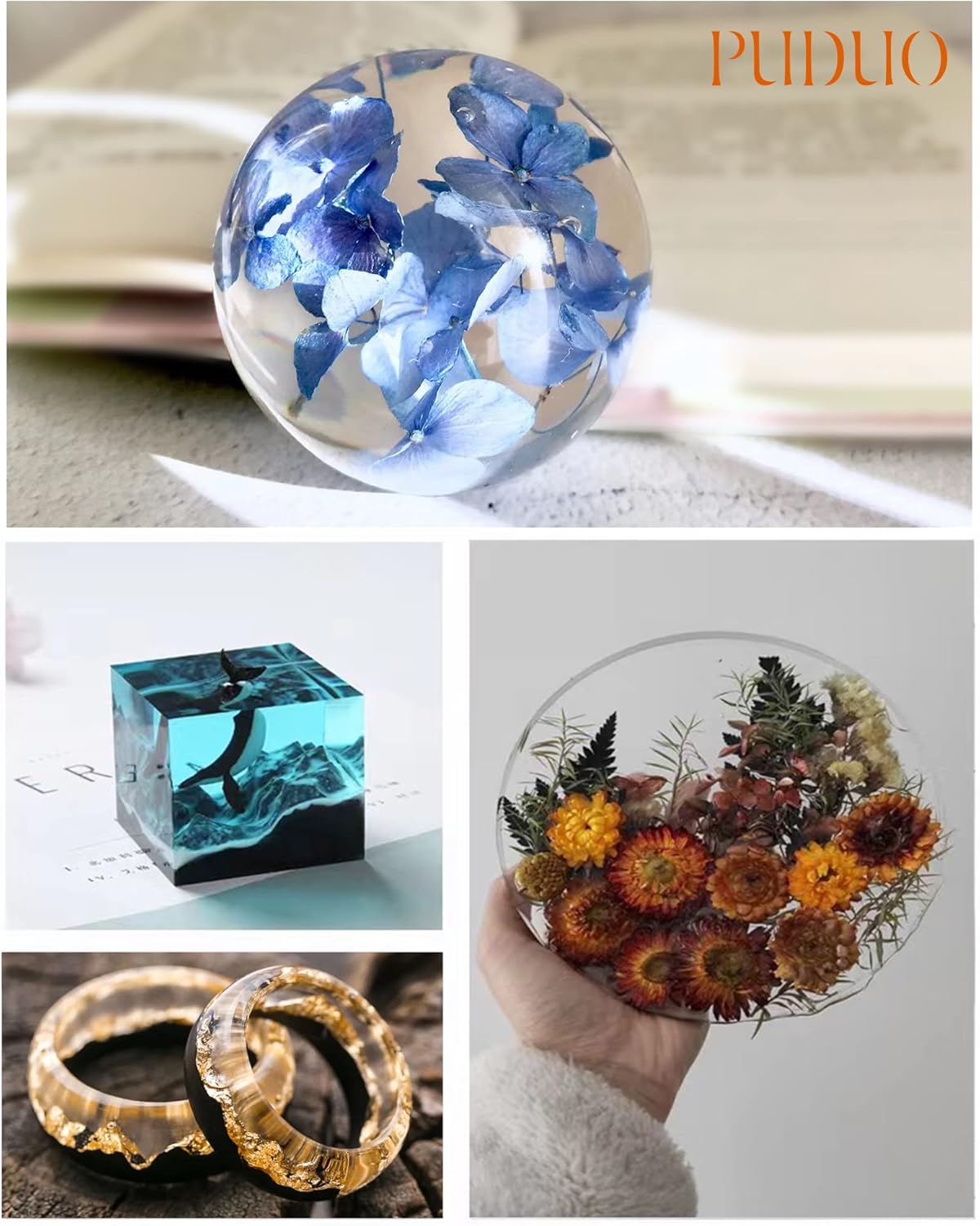 - PREFECT FOR ANY ARTIST’S PROJECT - PUDUO Clear Epoxy Resin has been created specifically for the resin art market! CRYSTAL CLEAR, long lasting results for art projects, casting, crafting, wood, and more! You will get 16 OZ resin and 16 OZ Hardener