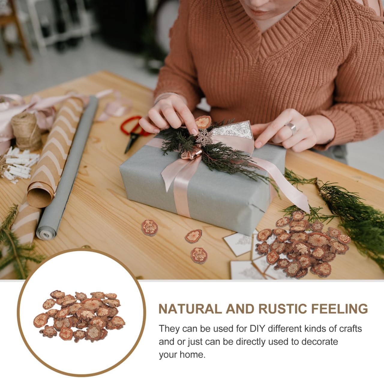 - Natural Rustic Style: These wood slices are rustic and natural, outlook keeps the tree bark, the wood texture and , can be an ingenious ornaments in many occasions.Filled them in a bottle to create an artistic sense in your home