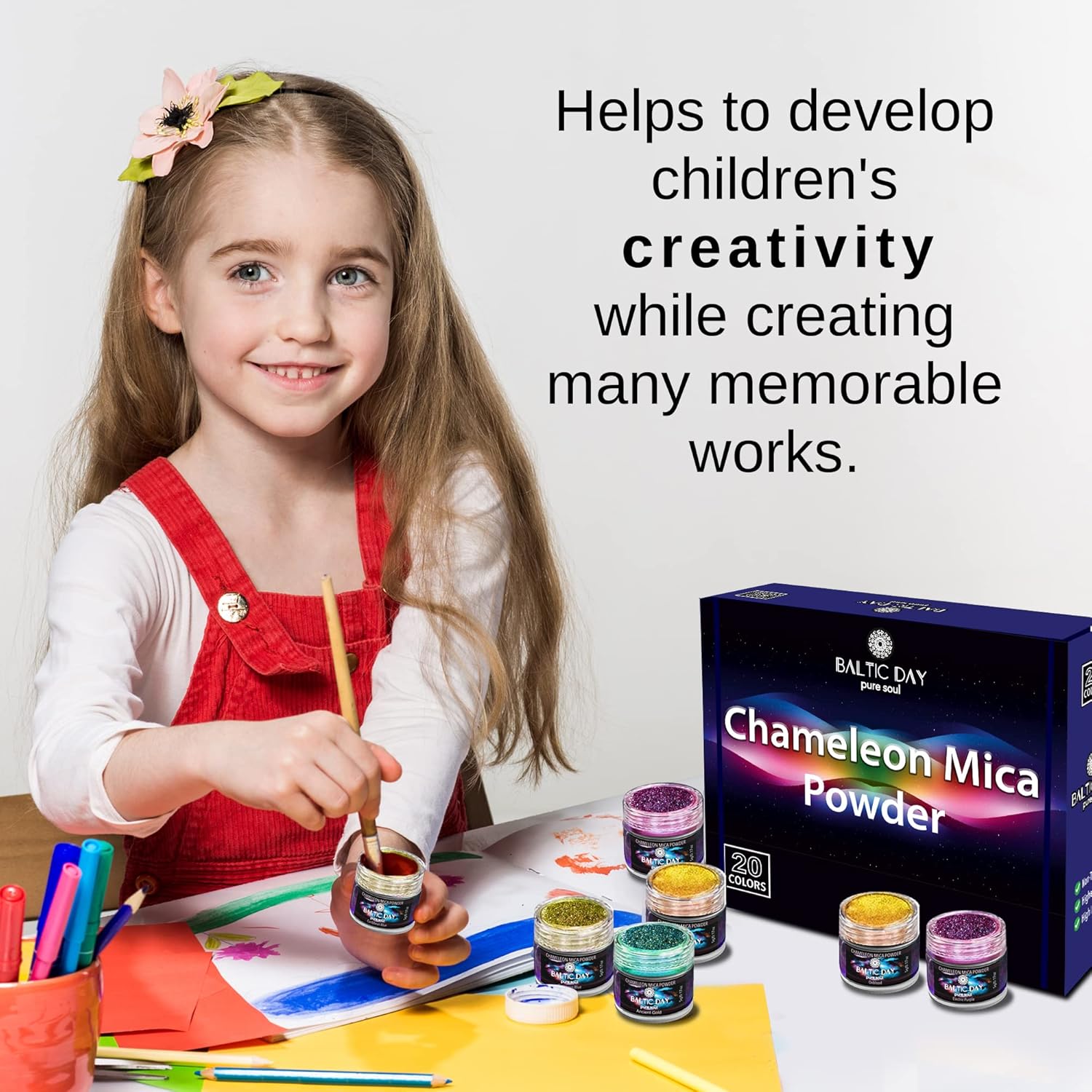BALTIC DAY - Chameleon Mica Powder, 20 x 5g Jars of Color Shift Mica Powder Set - Epoxy Resin Color Pigment - Chameleon Powder - Holographic Mica Powder for Resin