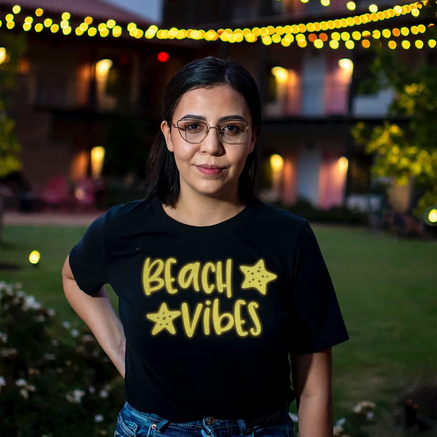 - PREMIUM QUALITY: Our glow glitter glod heat transfer vinyl rolls are crafted from high quality and eco-friendly pu vinyl material, soft, thinner but high elastic, ensures strong adhesion to fabric, fade resistance, and durability. Easy to weed and peel. Certified by SGS, safe for children's clothing. Machine washable