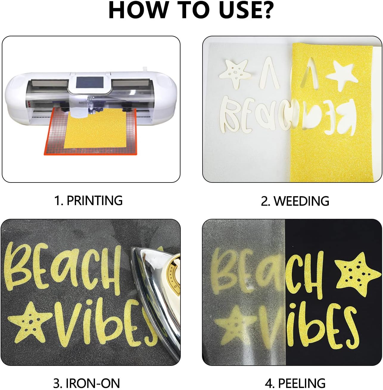 - UNLIMITED CREATIVITY: Each roll measures 12 inches x 8 feet, offering ample material for your creative projects. Cut them into various sizes to create art designs, logos, or letters for a wide range of projects, from t-shirts to bags to hats. Our glitter glod htv vinyl is compatible with all cutting machines, ideal for 12x12" and 12x24" cutting pads