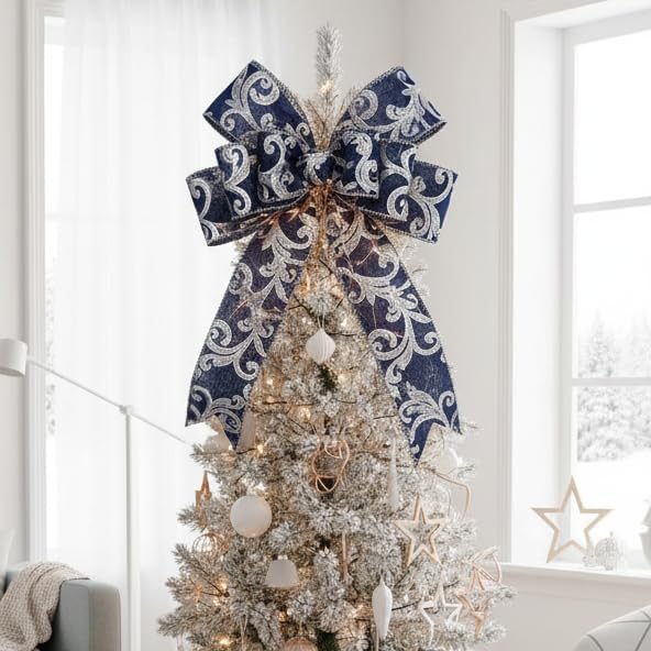 CT CRAFT LLC Royal Satin Silver Swirl Wired Ribbon 2.5 Inch x 10 Yards for Christmas Home Decor Tree Topper Bow Gift Wrapping DIY Crafts Wreath Garland