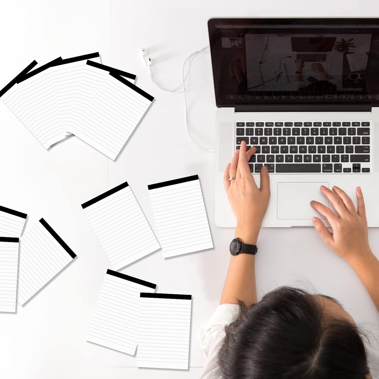- EXCELLENT MATERIAL: Our writing pads are made of premium 80gsm thick paper for smooth writing without ink bleed. Each notepad has a thick cardboard backing to make your writing easier and more comfortable. Narrow ruled paper provides you with neat and orderly lines to keep your records organized and legible.