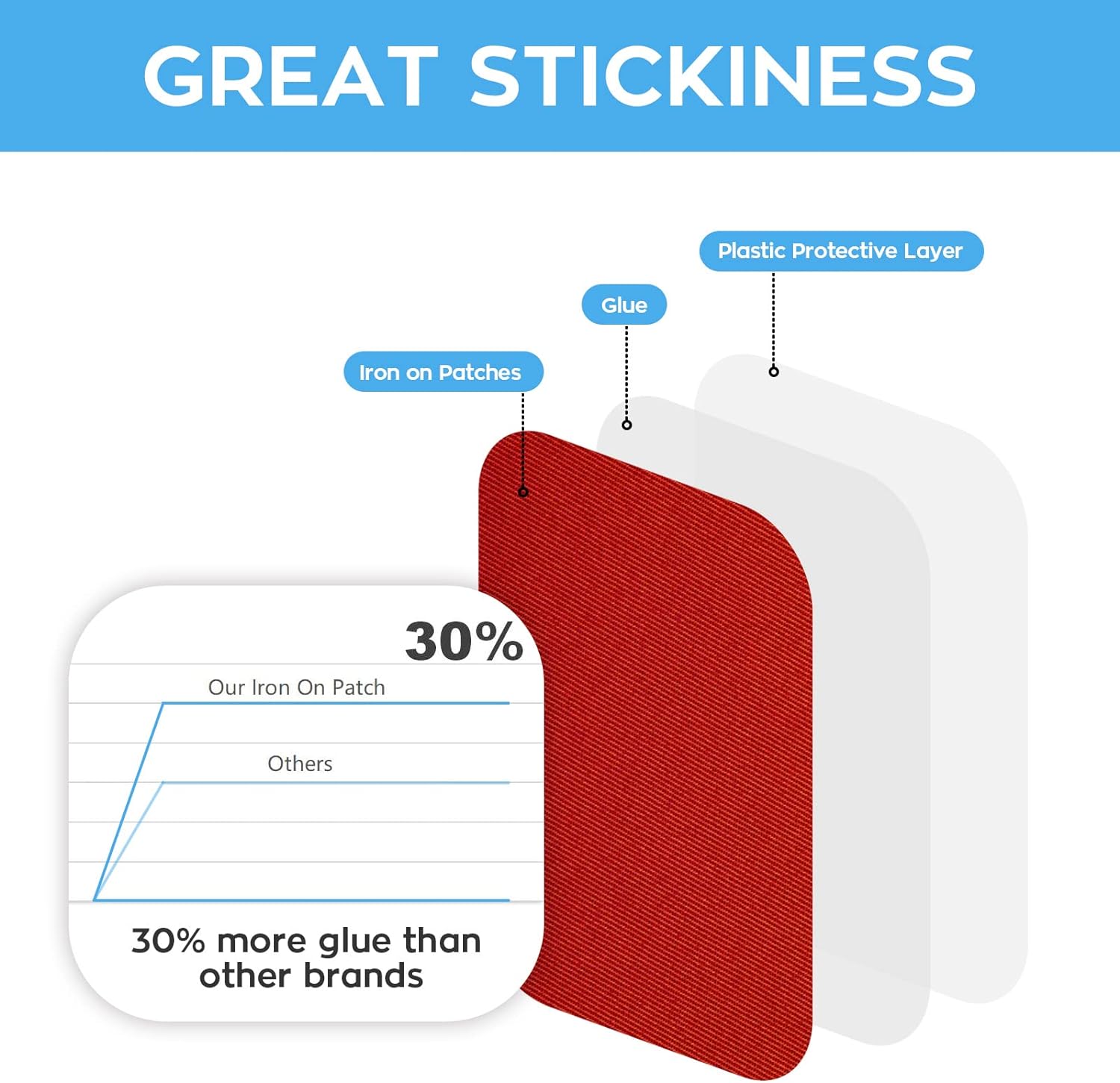 - GREAT STICKINESS & DURABLE: Our iron on patches are soft and made of polyester material. 30% more glue than other iron on patches for clothing, which could be machine washed and makes it through multiple washes, still remains its strongness and durability. Perfectly merged with your restored items without any falling off and fading after washing