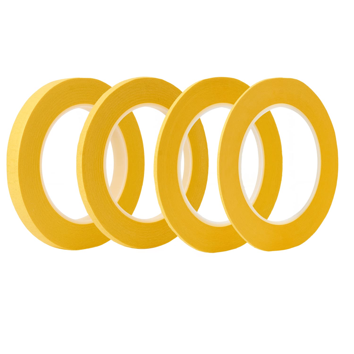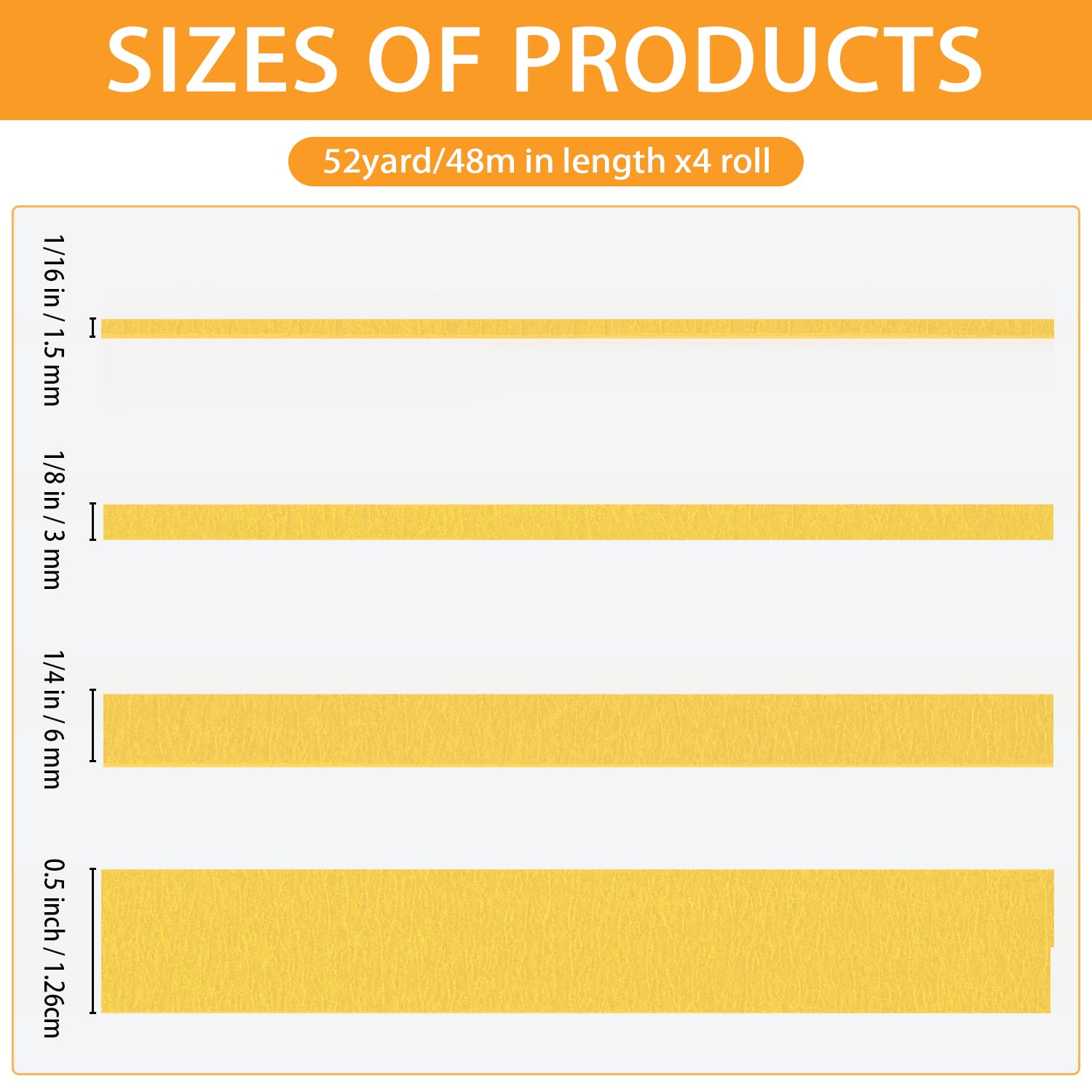 QDiShi 4 Rolls Fine Line Tape(Yellow), Fineline Masking Tape in 1/16, 1/8, 1/4 and 1/2 Inch Wide x 52 Yard Long, Automotive Masking Tape for DIY Car Auto Paint Art