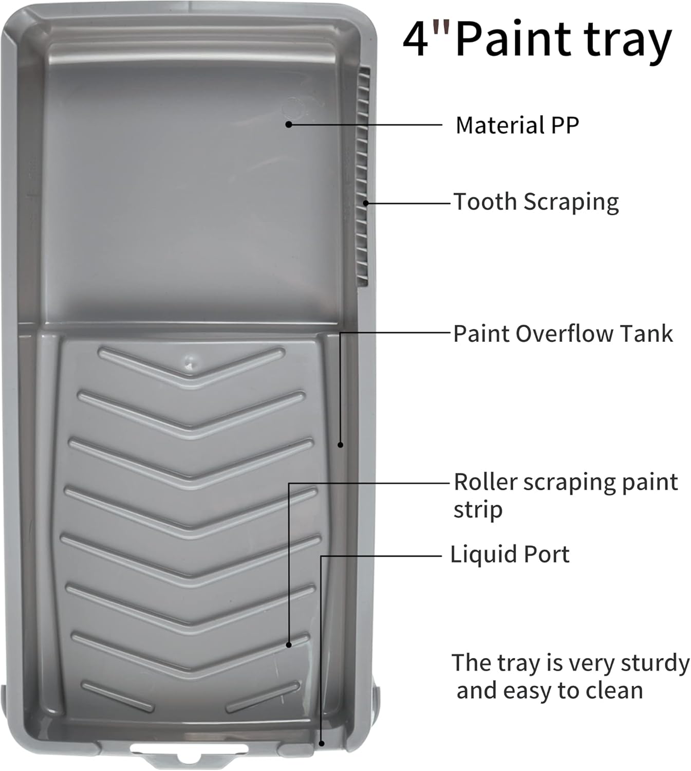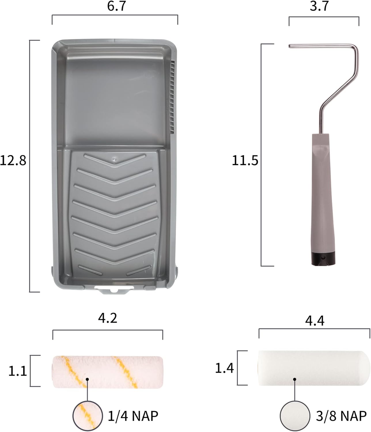 - 8-PIECE PAINT ROLLER KIT :Package include:1 4" paint roller frame, 3 4" roller cover, 2 4"foam roller, 1 4" paint tray,1 4" paint trays linerJust add Paint to the painting kit and you are ready to go