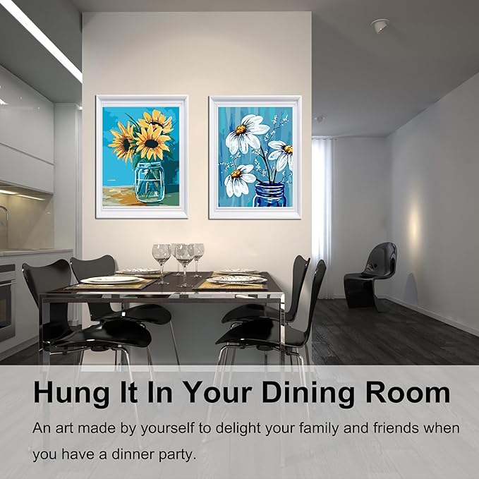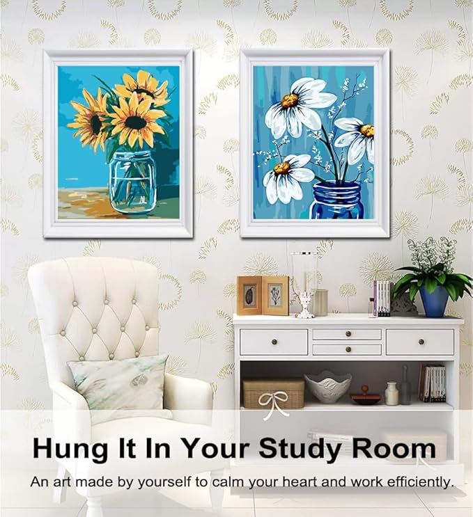 BAISITE Paint by Numbers Kit for Adults Beginners,12" Wx16 L 2 Pack Canvas for Painting Kits for Adults in Colorful Box-Daisy and Sunflowers 0304
