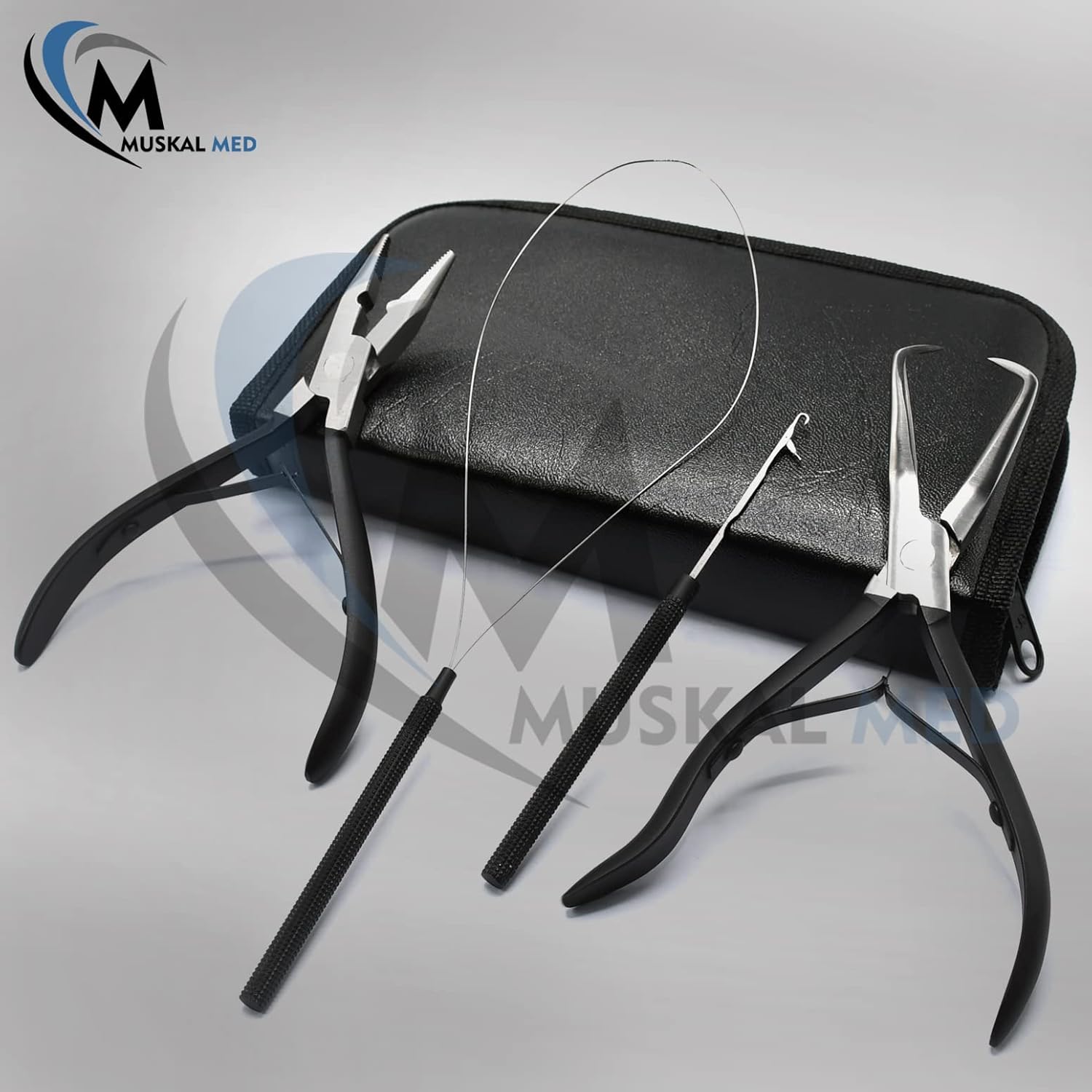 Professional Hair Extension & Beading Tool Kit Remove Plier Set for beads (4 Piece) I-Link Micro Ring Loop Needle Pulling Hook Threader Wire for Silicone Rings (Black)