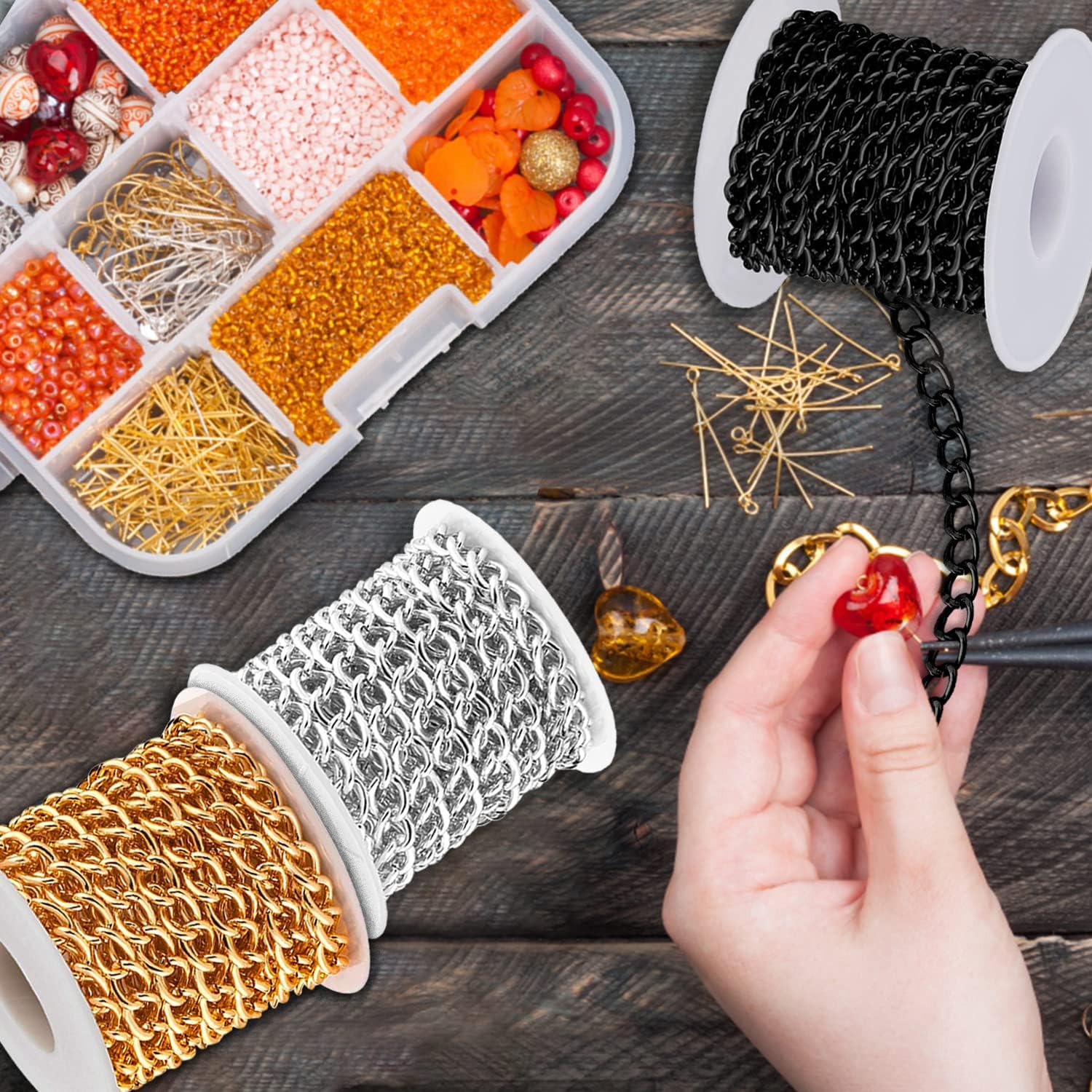 Jishi 16ft Aluminium Curb Chain Roll, Thick Twisted Chain Links, Black Plated Metal Craft Chain Curb Link Chain Spool for Jewelry Making Necklace Bracelet DIY Crafts, Jewelry Making Findings Supplies