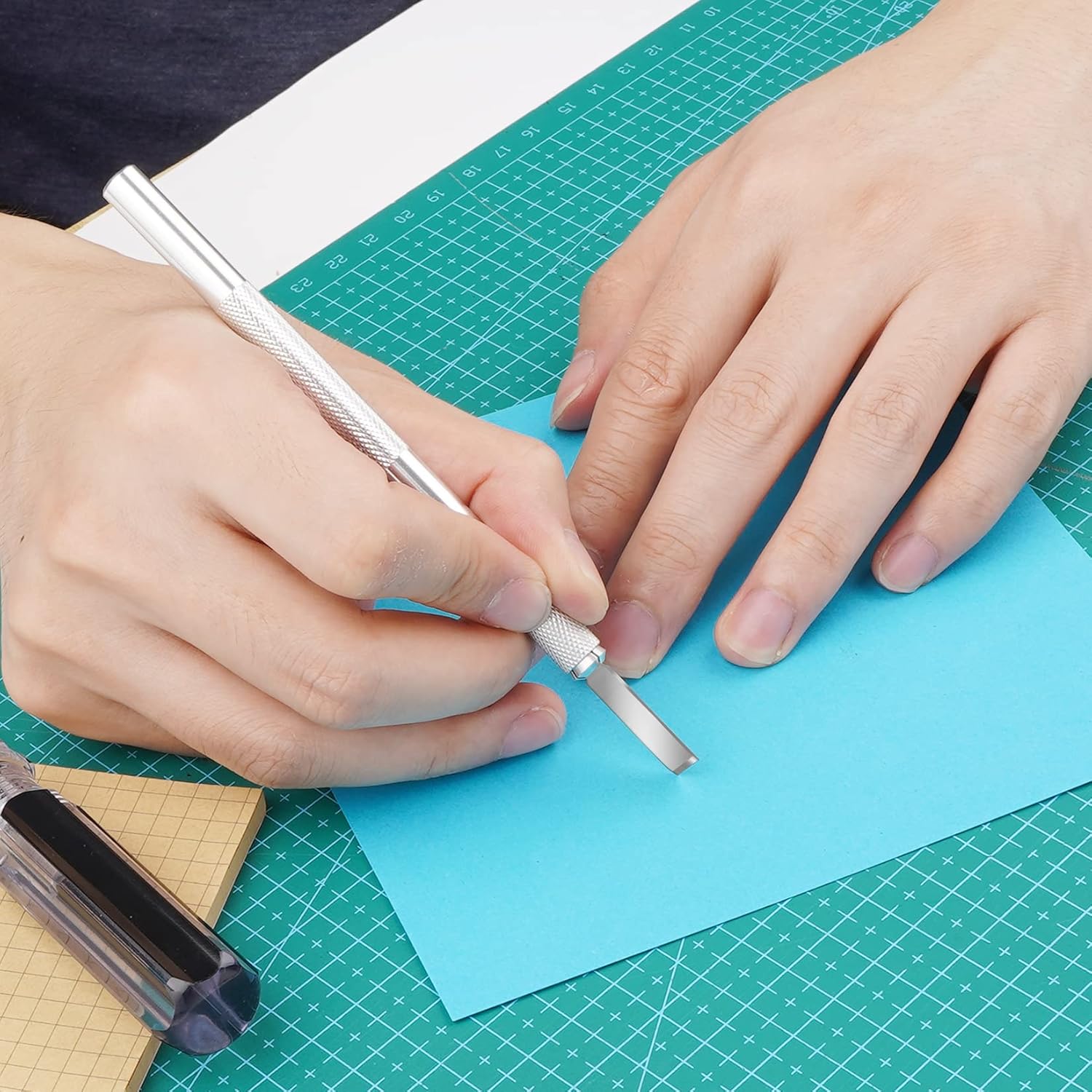 - 【WIDE APPLICATIONS】Our exacto blades are perfect tools for graphic artists and designers, ideal for cutting cardboard, wood, plastic, paper, cloth, leather, foam board, etc.
