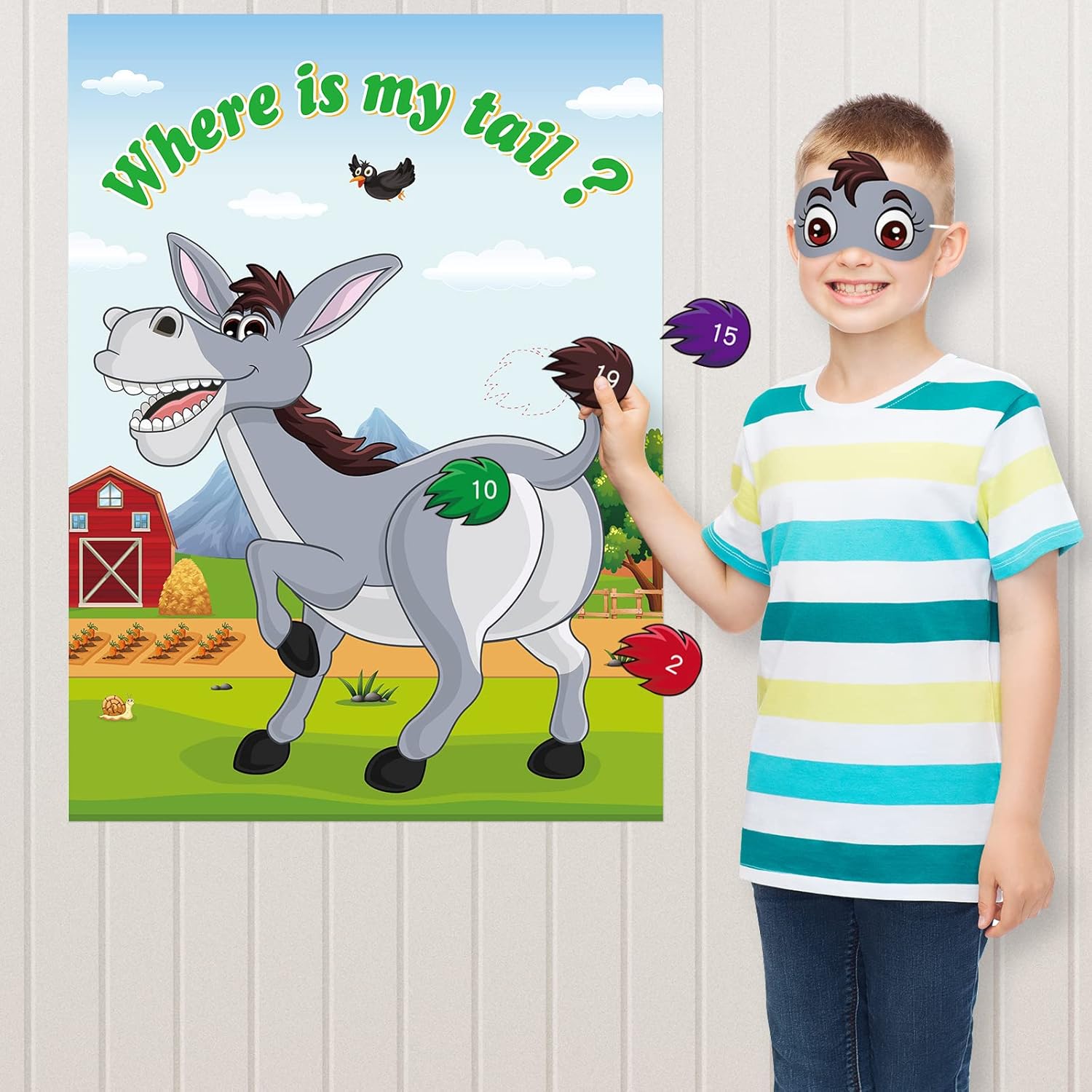 ASTARON Pin The Tail on The Donkey Game with 30 Tail Stickers for Birthday Party Carnival Circus Supplies