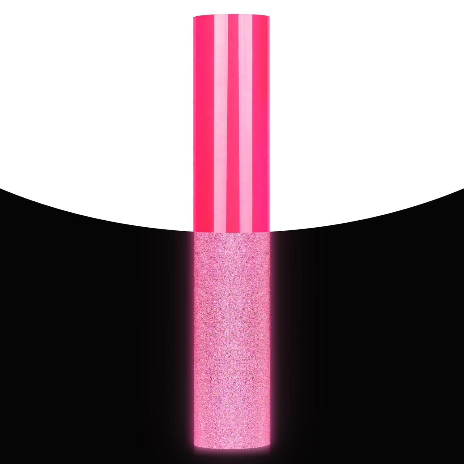 - Reflective HTV Vinyl Hot Pink: This is a Neon pink PU heat transfer vinyl, the difference is that at night or in the dark, it will reflect pink light when there is light. Its carrier is high-quality high-temperature, non-deformable PET material with a slight viscosity, which has excellent cutting and weeding functions.