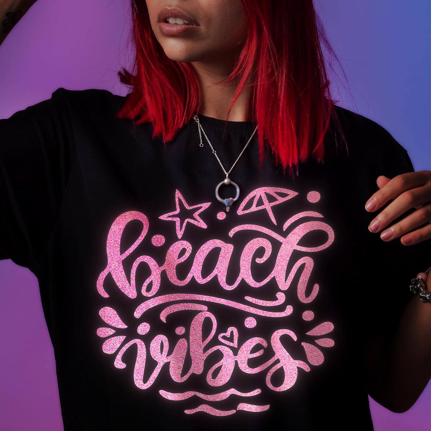 - Wide Application: Hot pink reflective vinyl heat transfer works best on cotton, polyester and cotton-polyester materials. You can personalize your custom t-shirts, canvas bags, hats, aprons, pants, coats and more with this vinyl reflective iron! If reflective HTV heat transfer vinyl is used for night wear, it allows you to ensure visibility and safety while running, biking, or working as a driver, traffic police.