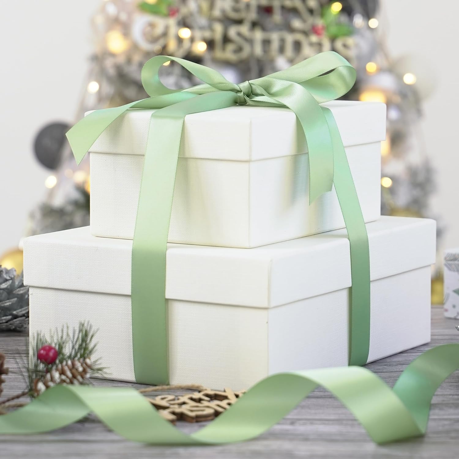 HUIHUANG Sage Satin Ribbon - 1 inch Light Sage Green Double Face Silk Satin Ribbon for Wedding Decor, Crafts, Gift Wrapping, Bows, Bridal, Floral, Bouquet, Invitation Card, Baby Shower, Party