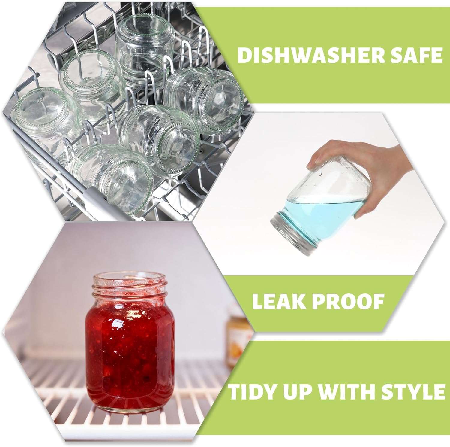 - BPA Free and food grade dishwasher safe glass mason jars, your best choice of food storage. It is also suitable for crafts and decorations. You can paint them and decorate in the party, or make any DIY projects you want