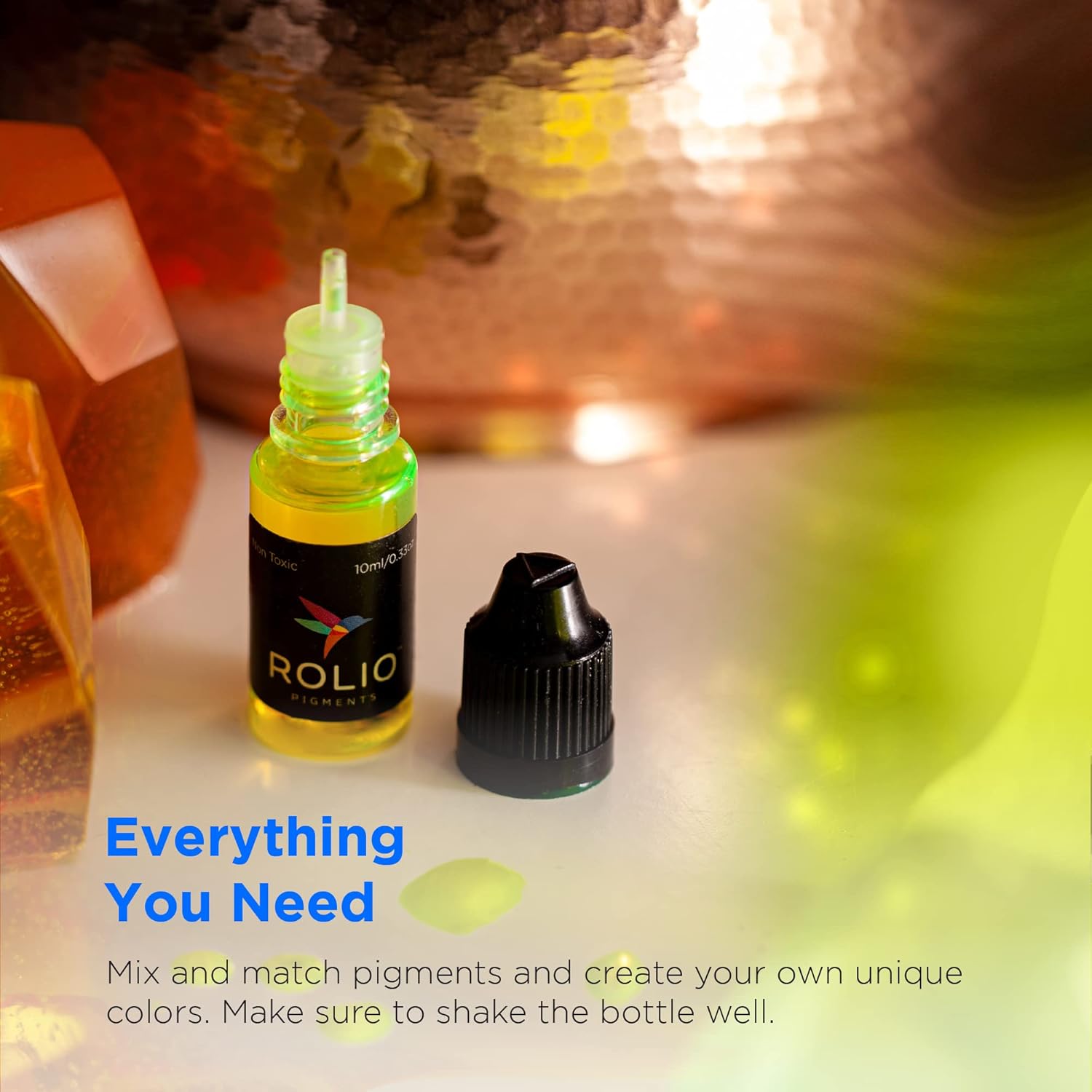 Rolio Pigments Resin Liquid Pigment Transparent Colors - 24 Vibrant Colors for Epoxy Resin, 3D Printer, Jewelry Making, Paint, Art Works, DIY Crafts - 0.33 oz/10 ml Each