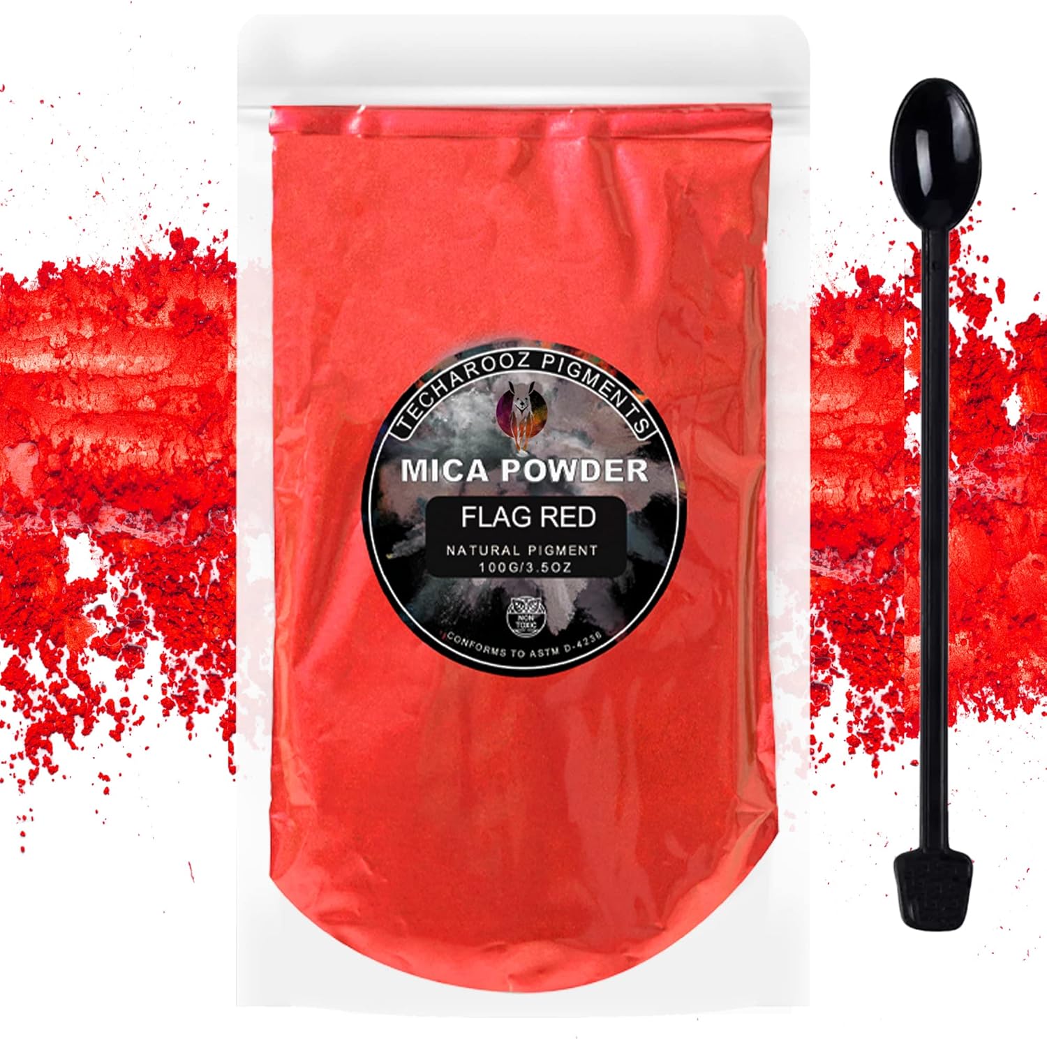 - Large Bag: Premium quality Red Flag mica powder in a large 100g/3.5oz bag. Perfect quantity and quality for craft projects of any size. This individually packed mica-based colorant is highly pigmented and will last a long time. Mix it with any TECHAROOZ colors to create unlimited combinations of different hues