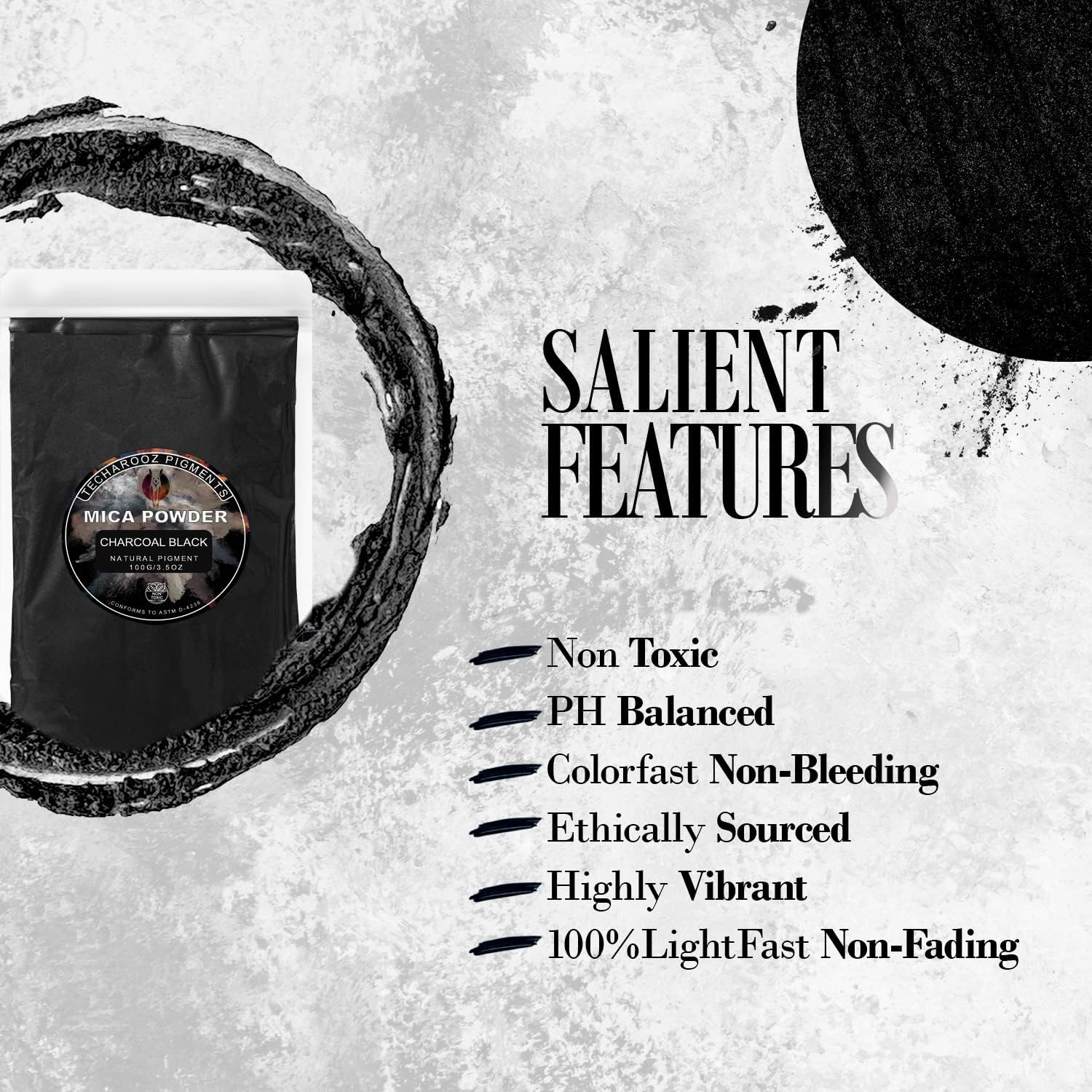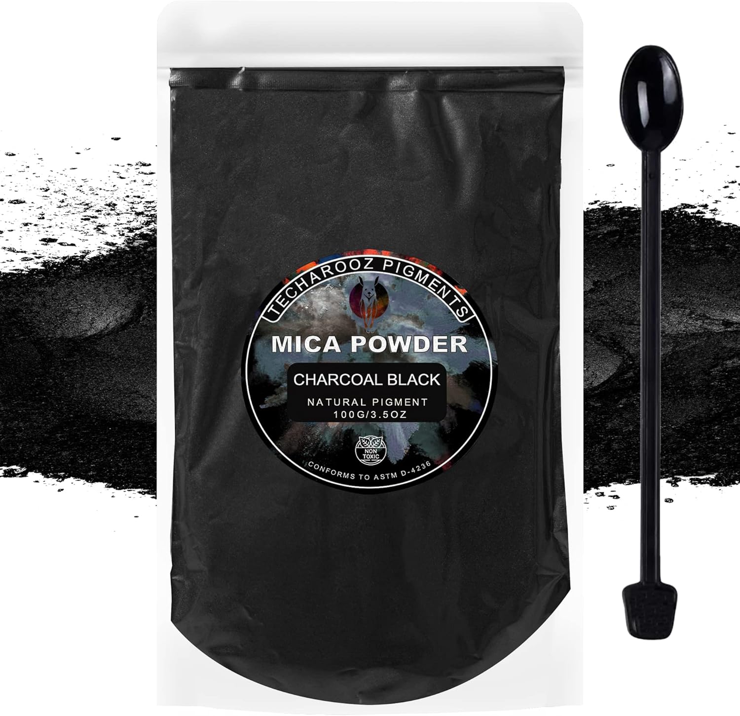 - Large Bag: Premium quality charcoal black mica powder in a large 100g/3.5oz bag. Perfect quantity and quality for craft projects of any size. This individually packed black colorant is highly pigmented and will last a long time. Mix it with any other TECHAROOZ colors to create unlimited combinations of different hues