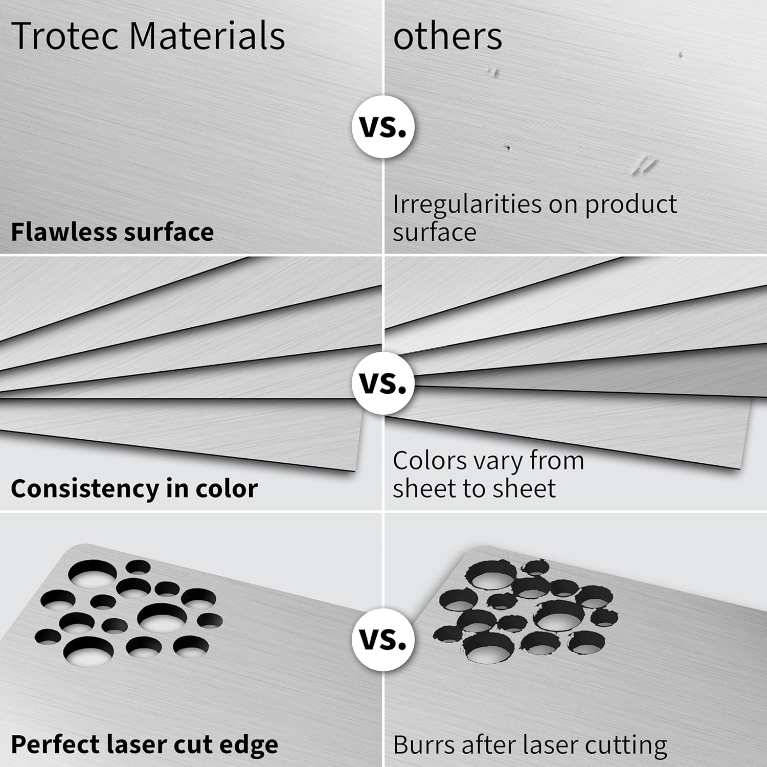Trotec | Metallic Looking Acrylic Sheet | 12"x12"x1/8", 8 Pcs | Brushed Aluminum/Black | Metallic Finish - Scratch Resistant for Laser Engraving & Cutting,Printing,Glowforge,Name Plate | USA Made