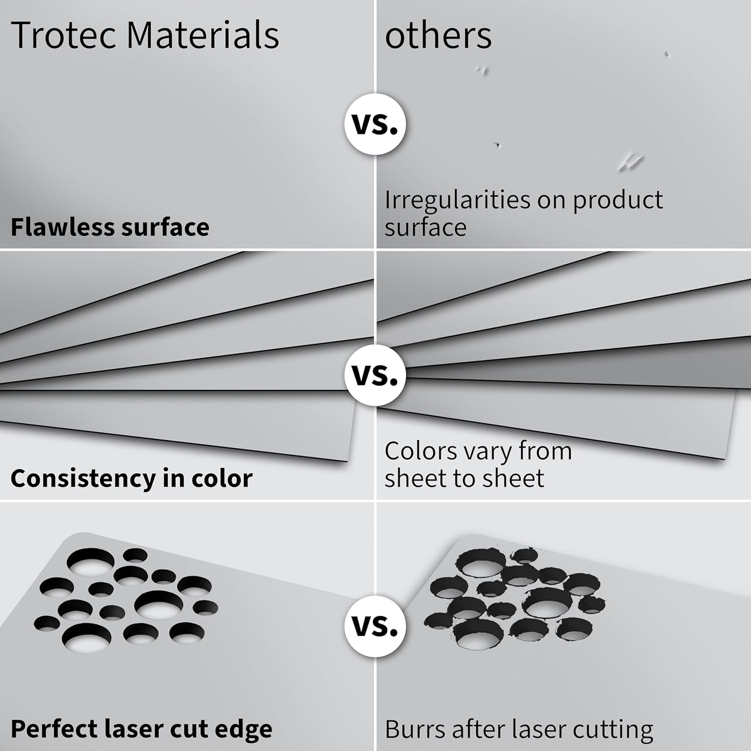 - Perfect Laser-Cut Edge: TroLase Metallic is a lightweight alternative to real metal that can easily be laser cut. This 2 layer plastic for engraving ensures laser cutting leads to perfect, smooth edges without any burrs on laser engravable plastic sheets and laser acrylic sheet metallic.