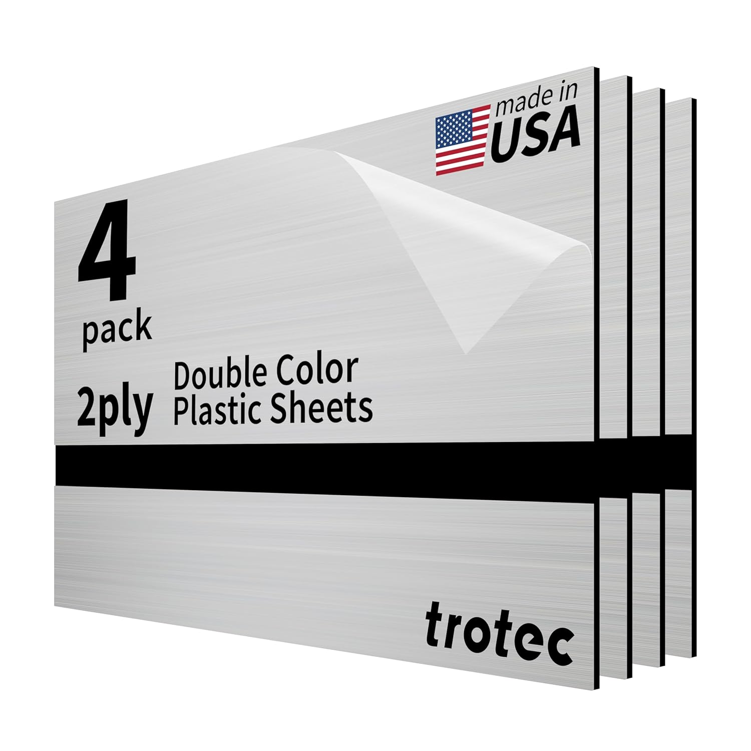 Trotec | Metallic Looking Acrylic Sheet | 12"x20"x1/16, 4 Pcs | Brushed Silver/Black | Metallic Finish - Scratch Resistant for Laser Engraving & Cutting,Printing,Glowforge,Name Plate | USA Made