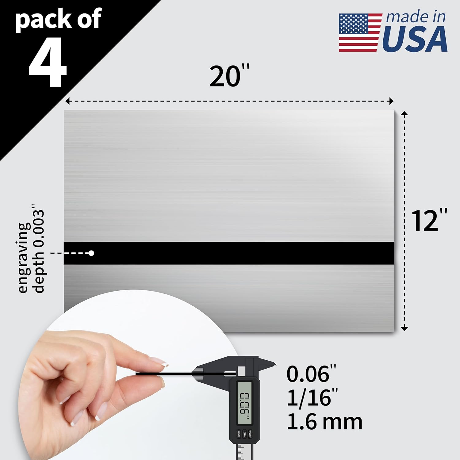 - Technical Data: Size: 12"x20" | Thickness: 0.06” (1/16", 1.6 mm) | Engraving depth: 0.003" (0.8 mm) | Top Color: Brushed Silver | Core Color: Black (RAL 7021) | Transmittance: Opaque