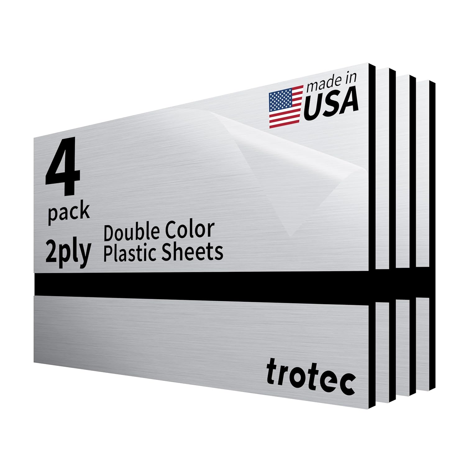 Trotec | Metallic Looking Acrylic Sheet | 12"x24"x1/8", 4 Pcs | Brushed Aluminum/Black | Metallic Finish - Scratch Resistant for Laser Engraving & Cutting,Printing,Glowforge,Name Plate | USA Made