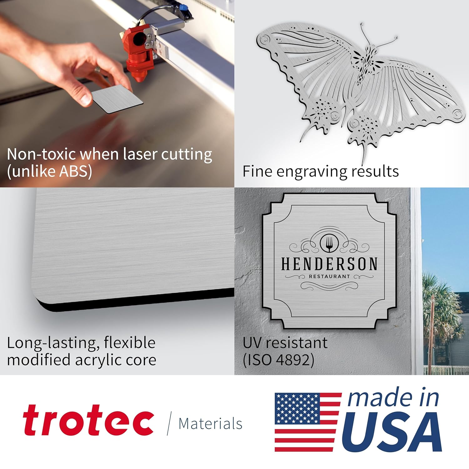Trotec | Metallic Looking Acrylic Sheet | 12"x12"x1/32, 8 Pcs | Brushed Aluminum/Black | Metallic Finish - Scratch Resistant for Laser Engraving & Cutting,Printing,Glowforge,Name Plate | USA Made