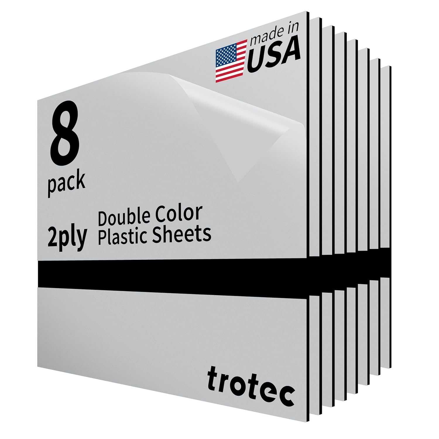 Trotec | Metallic Looking Acrylic Sheet | 12"x12"x1/16, 8 Pcs | Smooth Silver/Black | Metallic Finish - Scratch Resistant for Laser Engraving & Cutting,Printing,Glowforge,Name Plate | USA Made