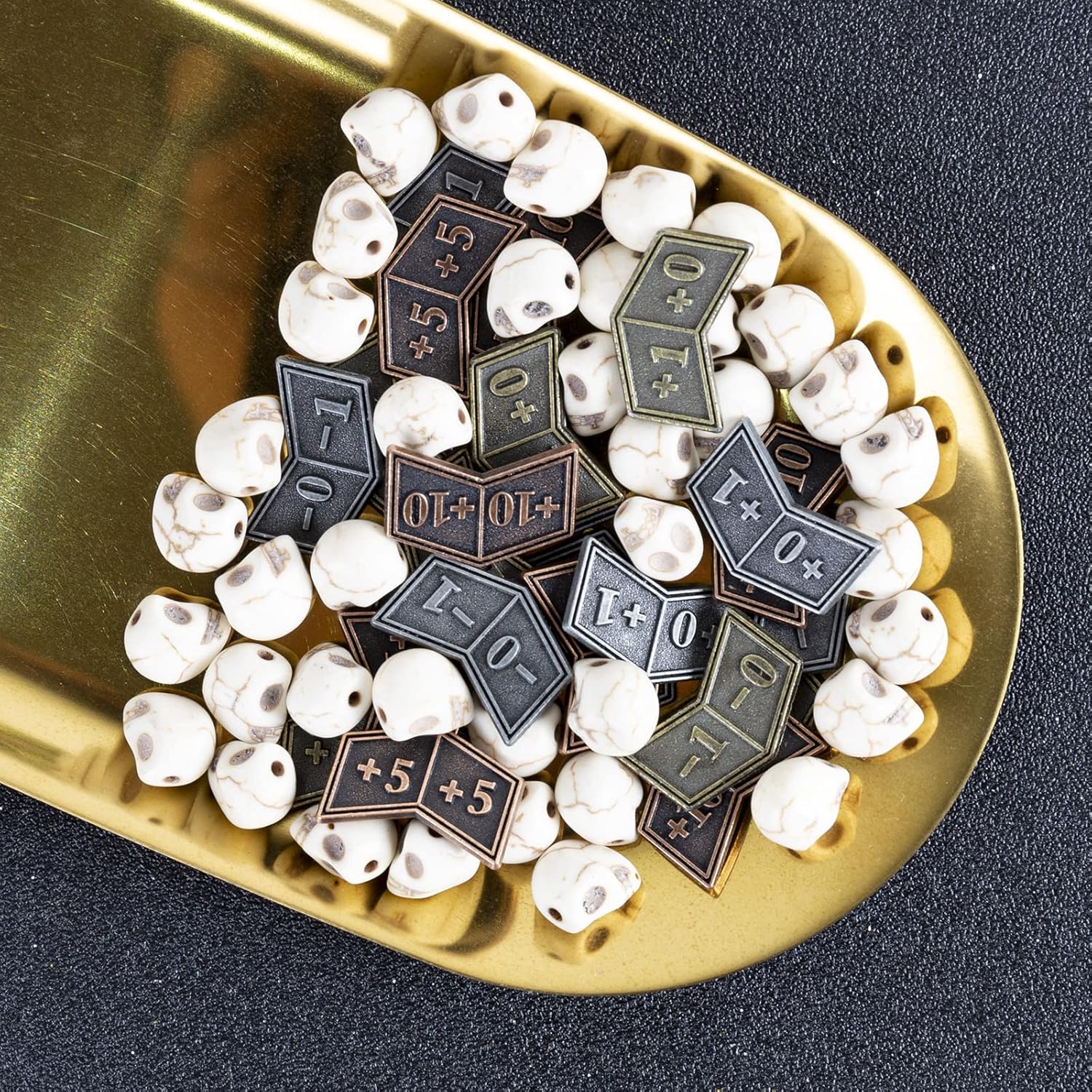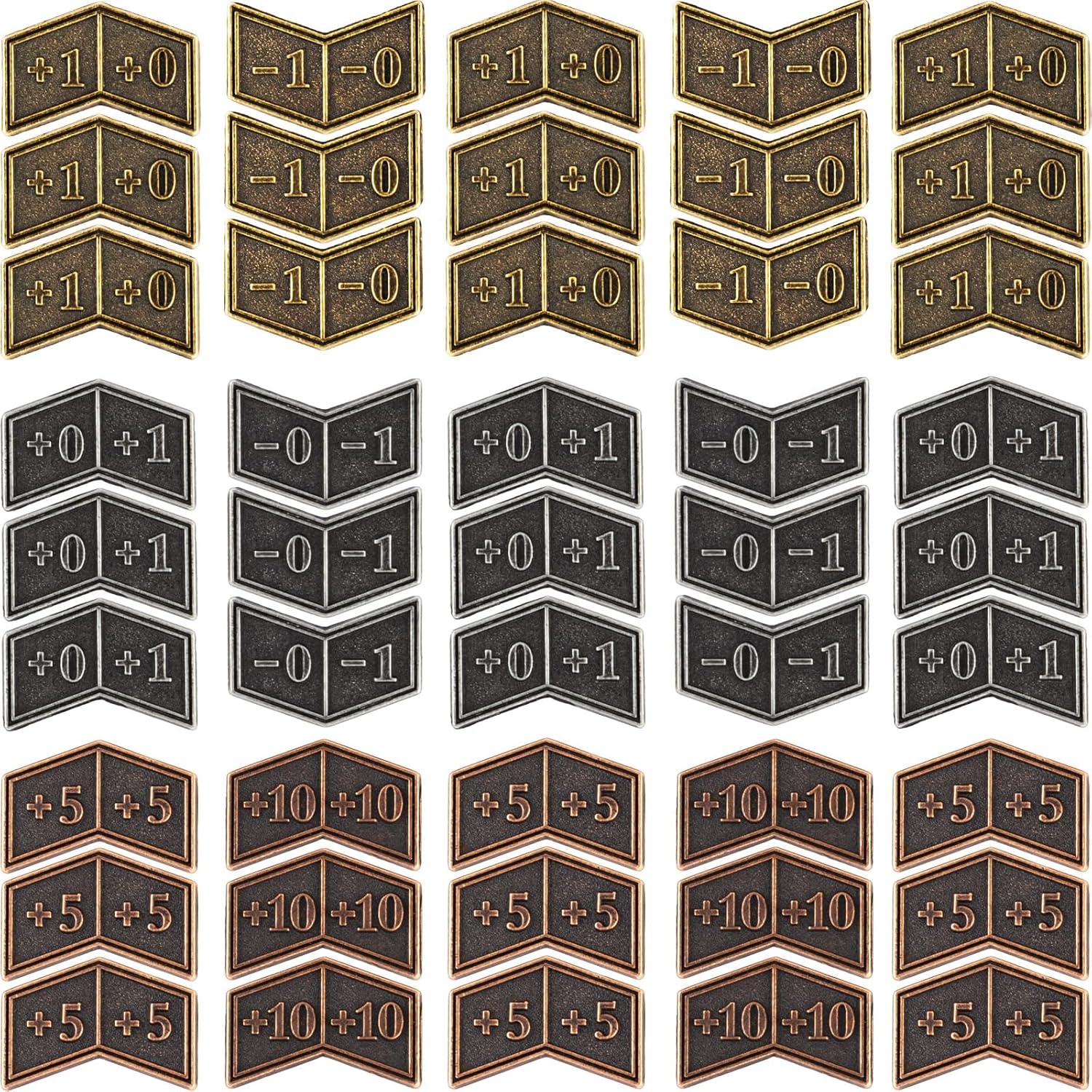 - PACKAGE INCLUDED: You will receive 45 pieces of Metal Tokens, with 3 different colors, including 15pcs black(+0,+1/-0,-1), 15pcs yellow(+1,+0/-1,-0) and 15pcs red(+5,+5/+10,+10). Each measure approx. 20 mm in width.