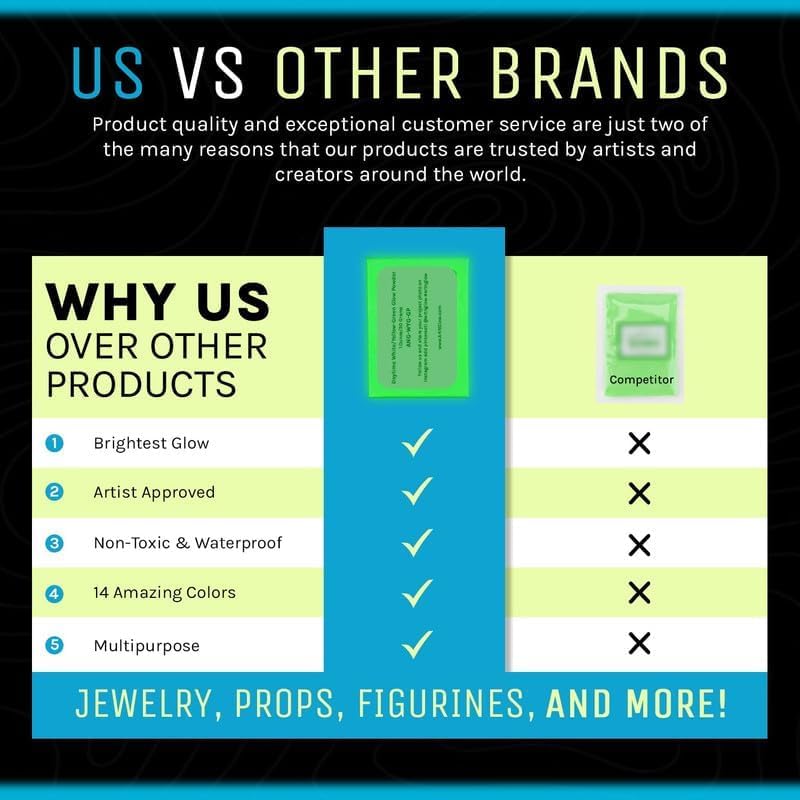 - We take great satisfaction in offering an extensive selection of premium glow products that rank among the finest in the market. Every item is carefully hand-packaged, a testament to our commitment to quality. As a locally-owned small business, we take pride in our glow in the dark pigment powder products and are readily available to address any questions you may have regarding their application.