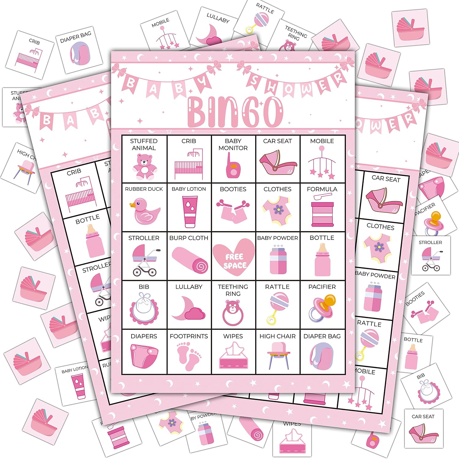 Pink Shower Party Bingo Cards, Shower Bingo Game, Shower Party Games for Adults, Gender Reveal Party Games Favors Supplies Decorations, 24 Players Bingo Game (A03)