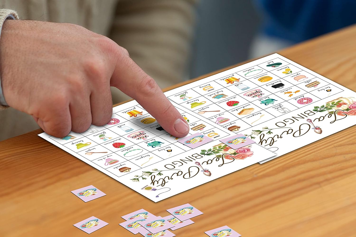 Tea Party Bingo Cards, Tea Bridal Party Games Bingo Cards, School Party, Birthday, Garden Tea Party Favors Supplies Decorations, 24 Players Bingo Game (A02)