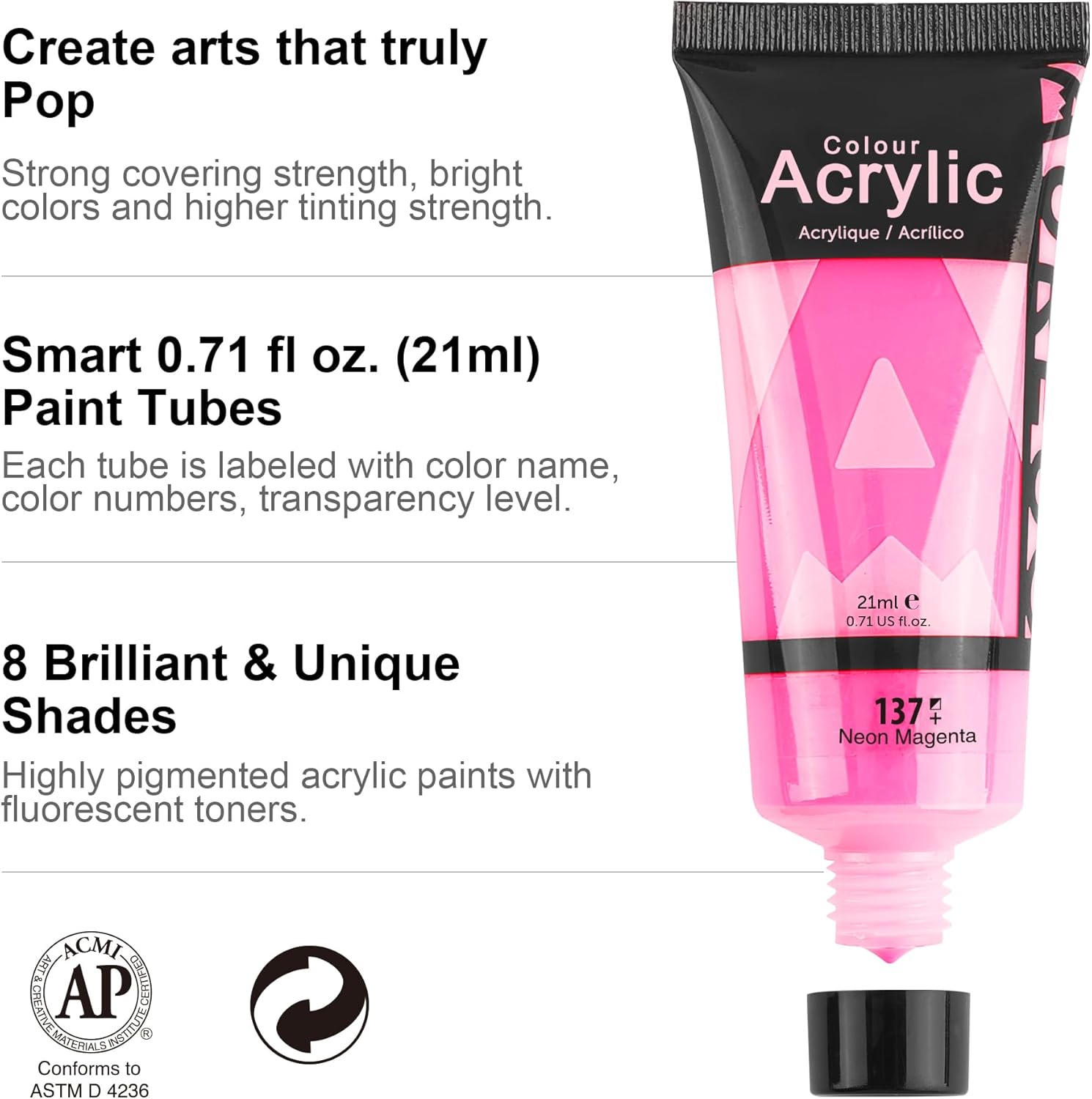 AUREUO Neon Acrylic Paint Set - 8 Fluorescent Colors 0.71 Fl Oz / 21ml Art Paint Tubes for Halloween Crafts Decor Rich Pigments Non-toxic Painting Supplies for Artists Hobby Painters Adults