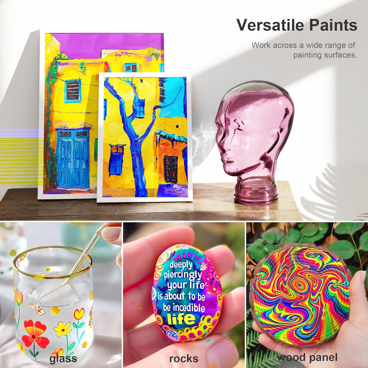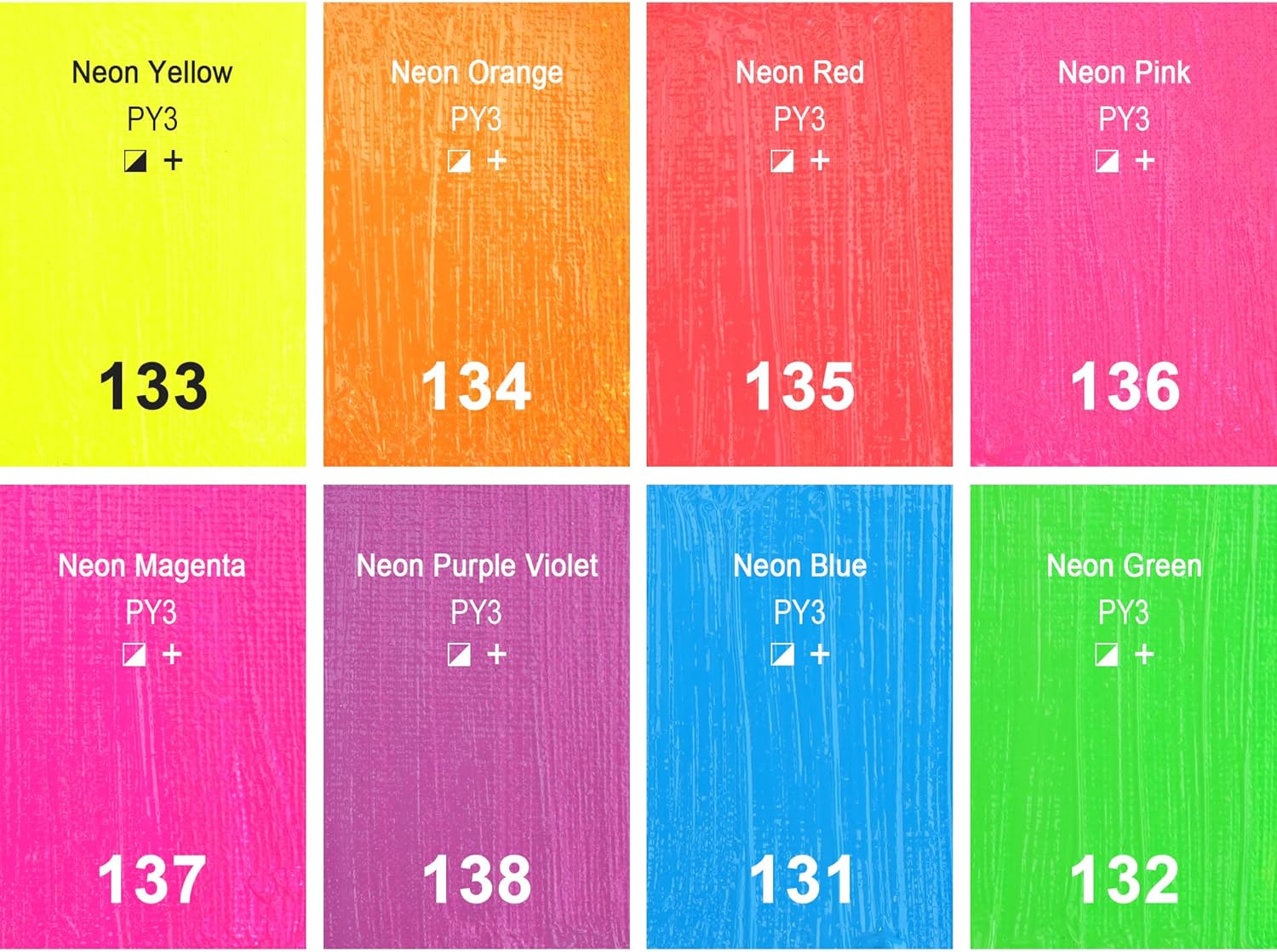 - RICH & VIBRANT COLORS - 8 major satin neon colors that remain exactly the same after the painting is dry and won't fade over long period of time. Your could express your creativity on acrylic paintings, decorative crafts for birthday, wedding, Halloween, Christmas and other special occasions.