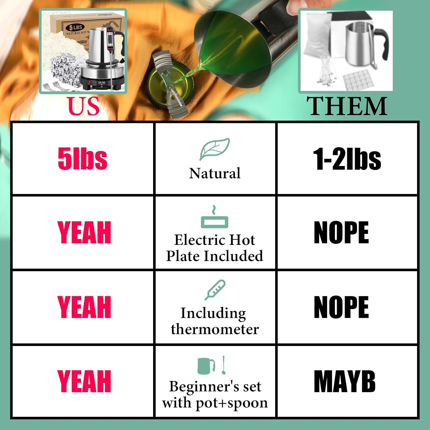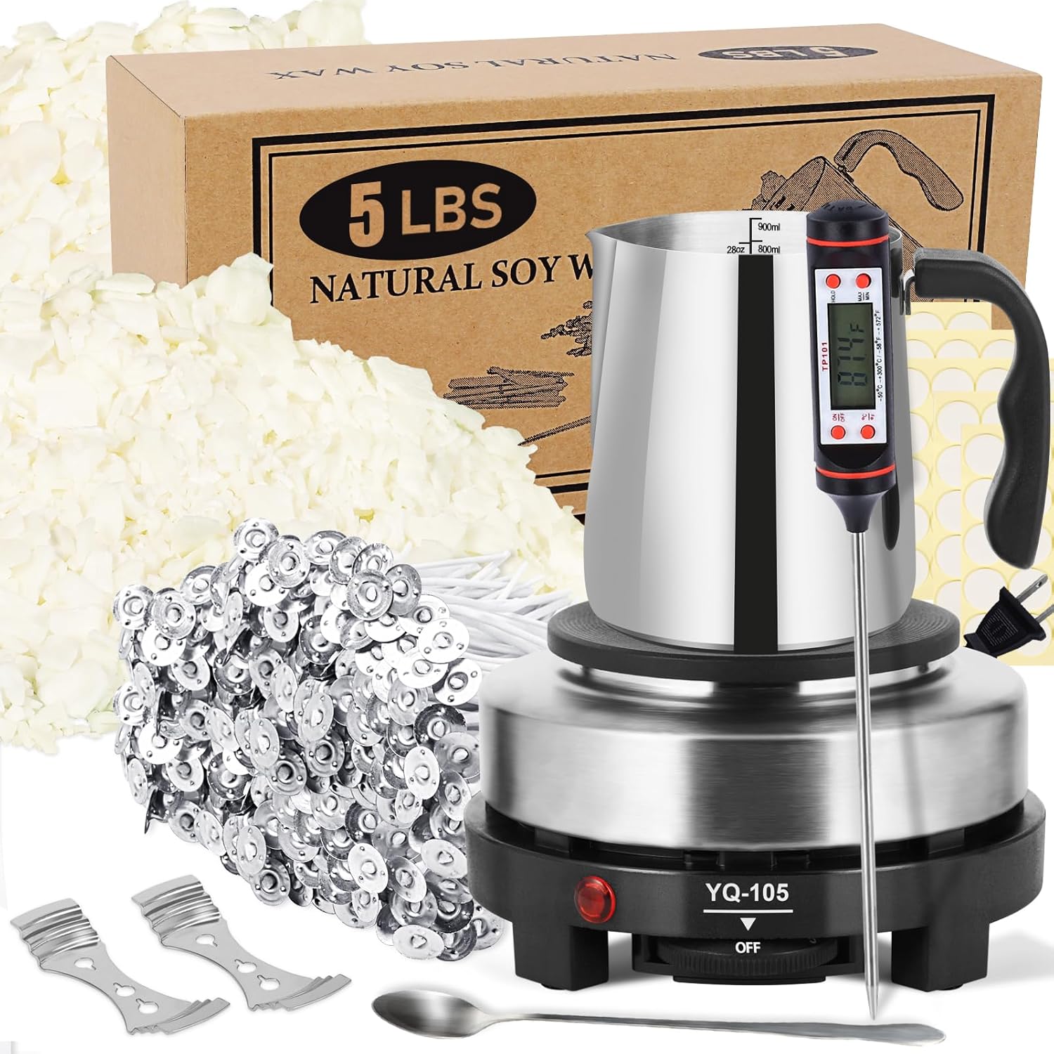 Candle Making Kit with Wax Melter, Natural Candle Wax for Candle Making - DIY Candle Making Supplies, Including 5lbs Soy Wax Flakes, Melting Pot, Electric Stove,Candle Kit for Adults, Beginnner