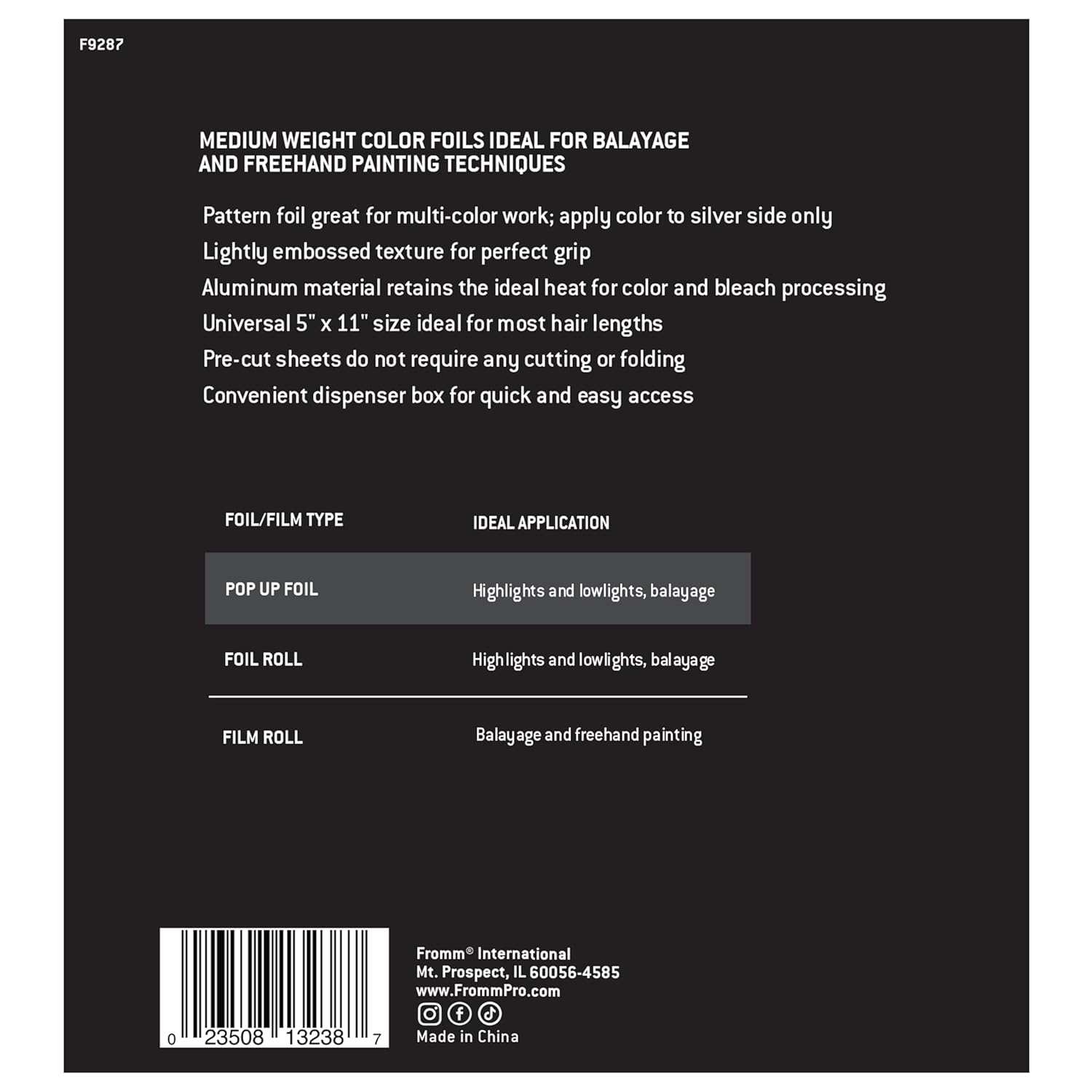 Fromm Pop Up Hair Foils, Zebra Print Pattern, Cosmetology Supplies, Hairstylist Essentials, Lightweight, Ideal for Highlighting and Coloring, Precut, 5" x 11", 500 Foil Sheets