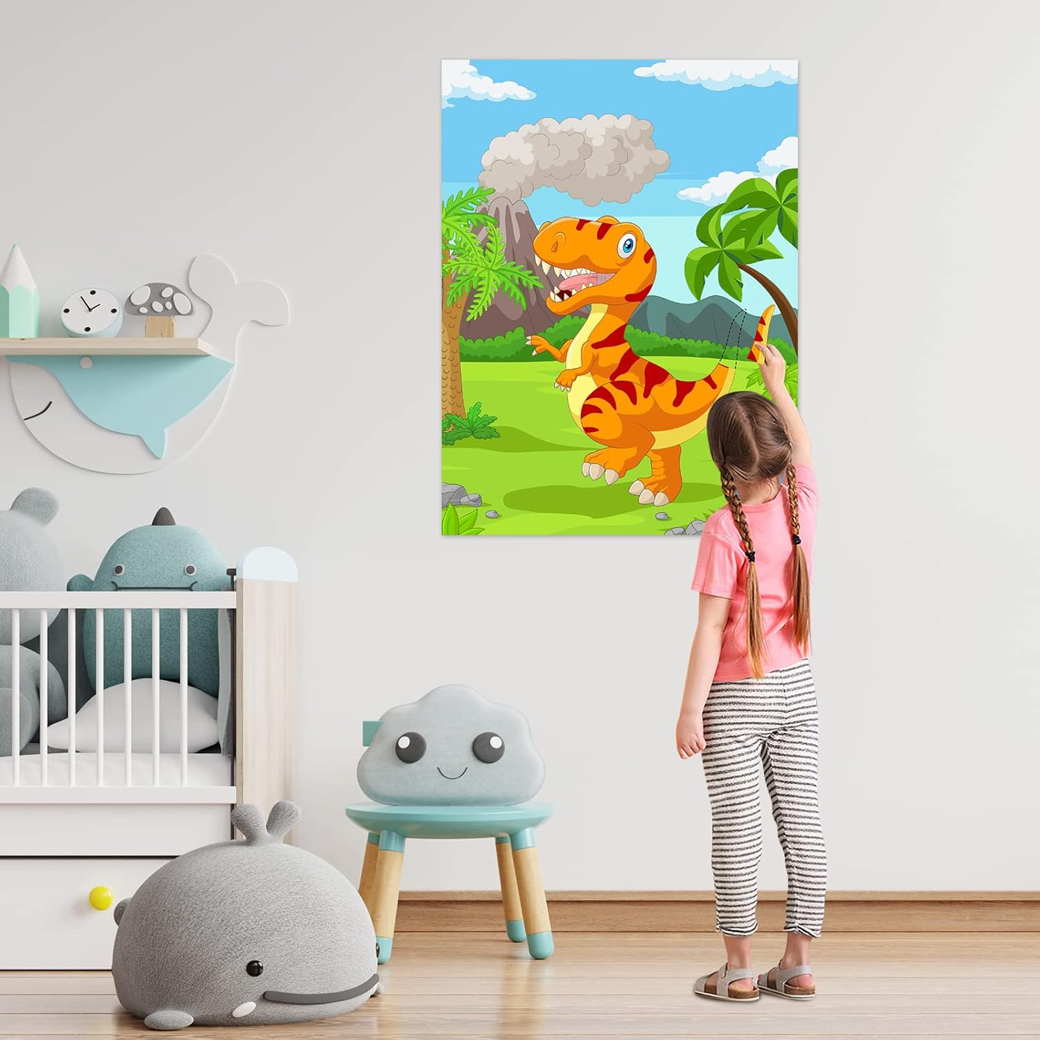 ASTARON Pin The Tail on The Dinosaur Party Game with 30 Tail Stickers for Dinosaur Birthday Party Supplies Pin Game, Boys Party Dinosaur Favors Decorations for Christmas
