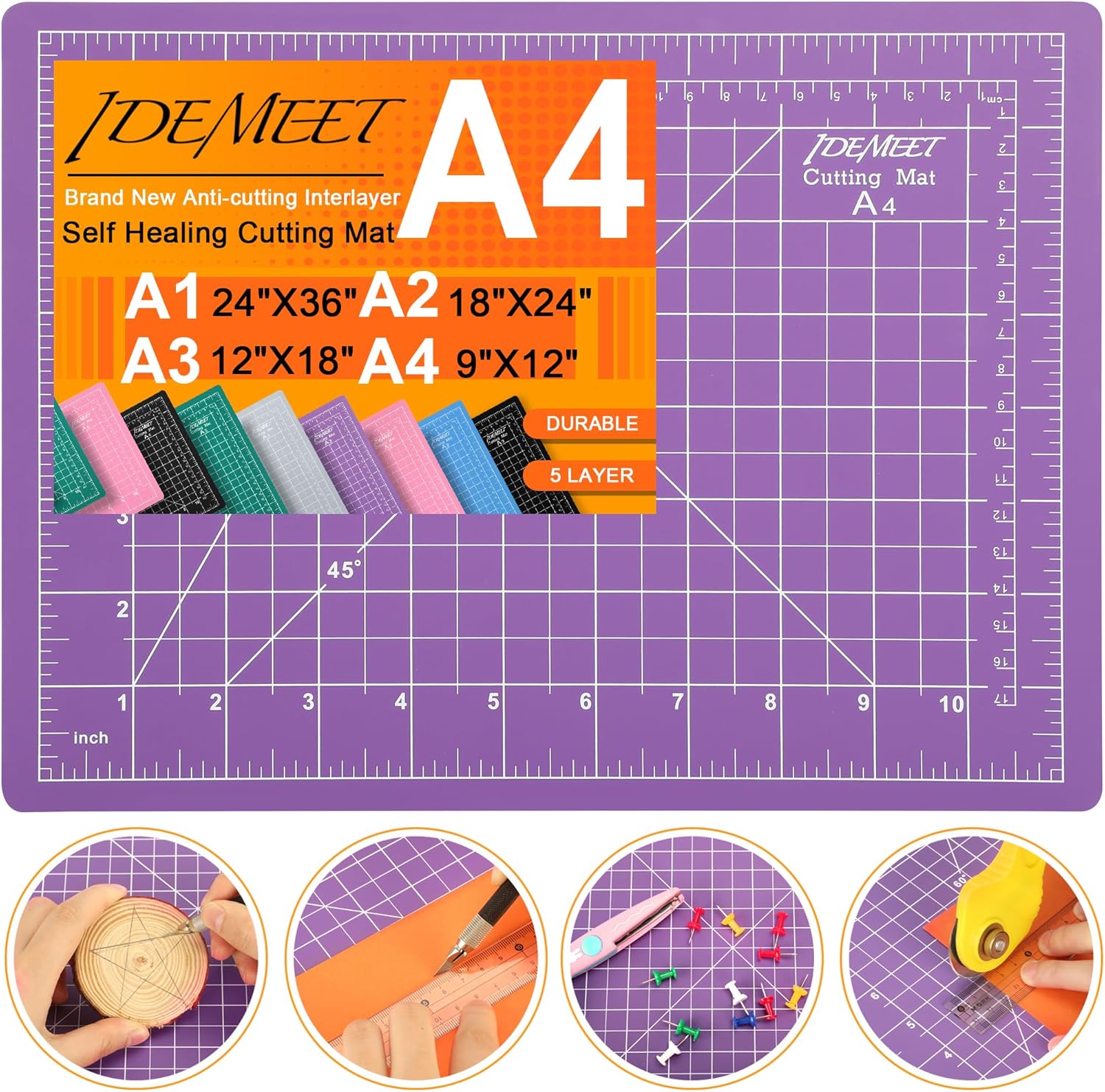Density-upgraded 9"x12" Self Healing Cutting Mat, Idemeet Rotary Sewing Mat for Crafts, 5-Ply Blade Table Protector Cut Board for Fabric Leather Cutting Quilting Modeling Hobby Project, A4, Purple