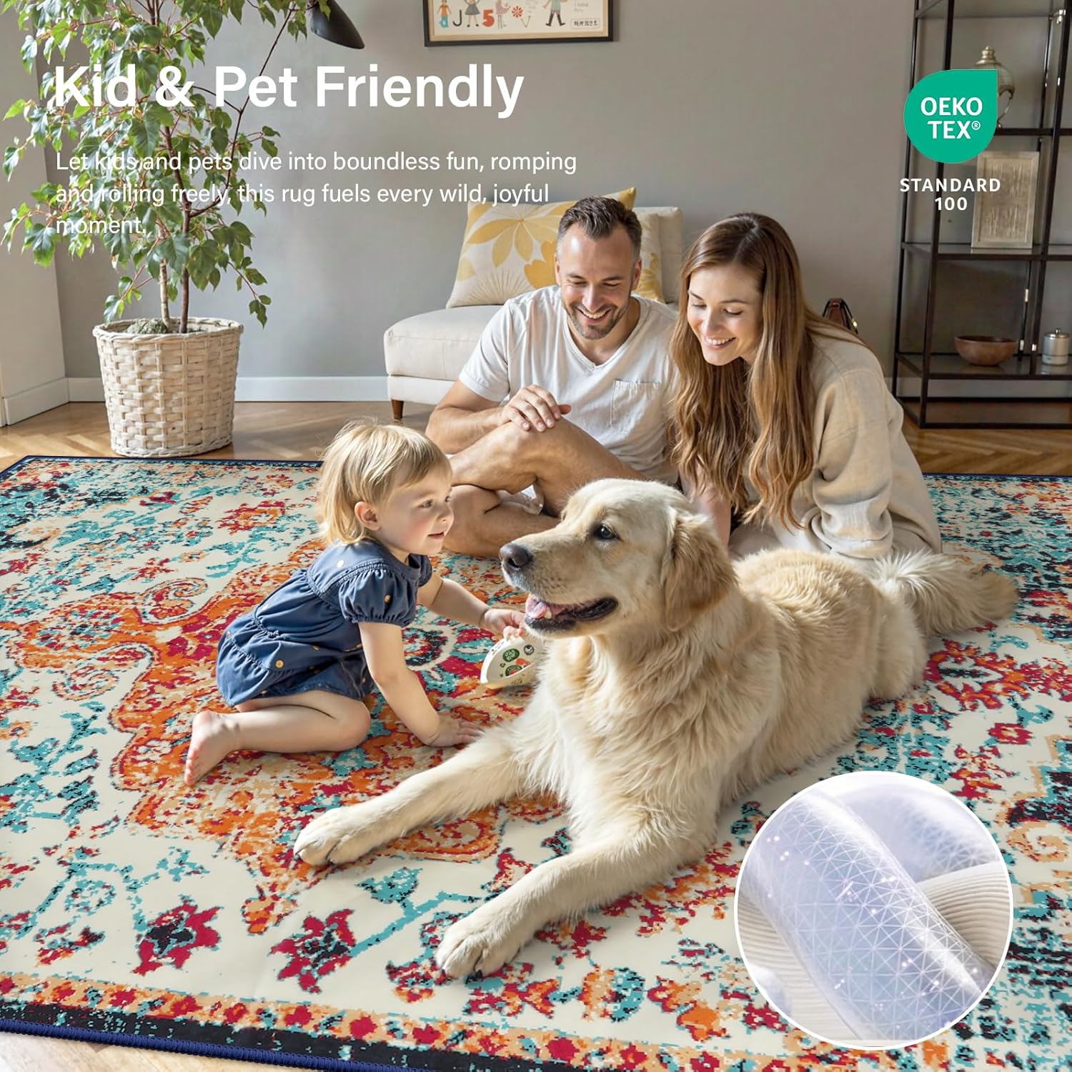 - [Soft & Skin-Friendly] - Our rugs for living room made of faux wool, if you walking barefoot on the carpet, you will have the feeling of stepping on clouds! All of our washable rugs have passed Environmental Certification. You can be sure that our area rugs are ECO-friendly and skin-friendly