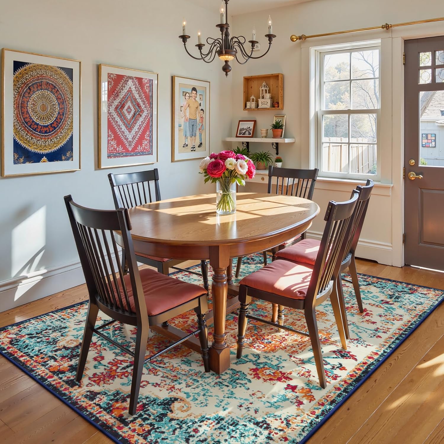 Lahome Bohemian Floral Medallion Area Rug - 5x7 Oriental Distressed Large Bedroom Rug, Soft Non-Slip Washable Dining Room Mat Indoor Throw Nursery Floor Carpet for Guest Room Entryway