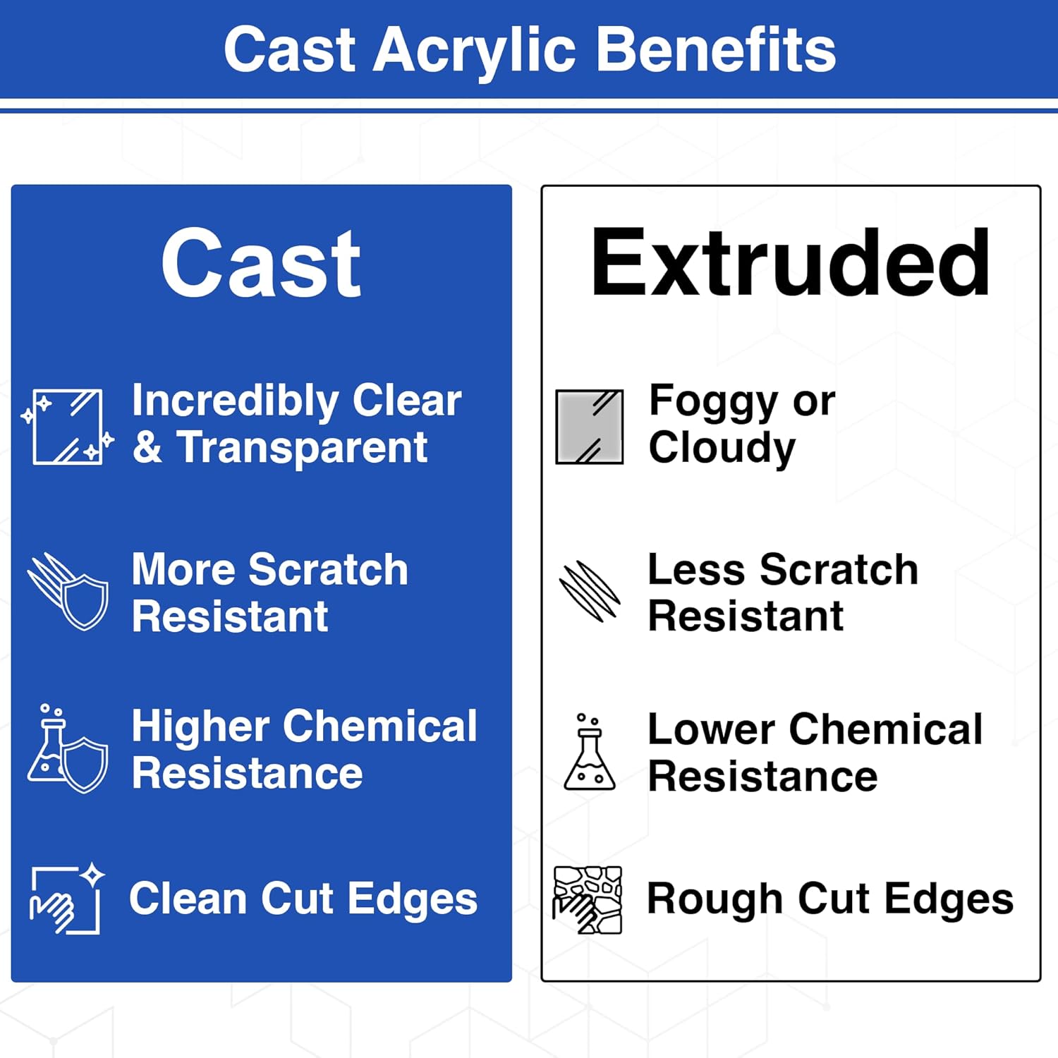- MADE IN THE USA WITH OPTICAL CLARITY - Duco’s 1/8 inch thick acrylic sheets are proudly made in the USA and offer glass-like clarity, UV resistance, and long-term durability PLEASE NOTE sheets have a ±1/8 inch cut tolerance