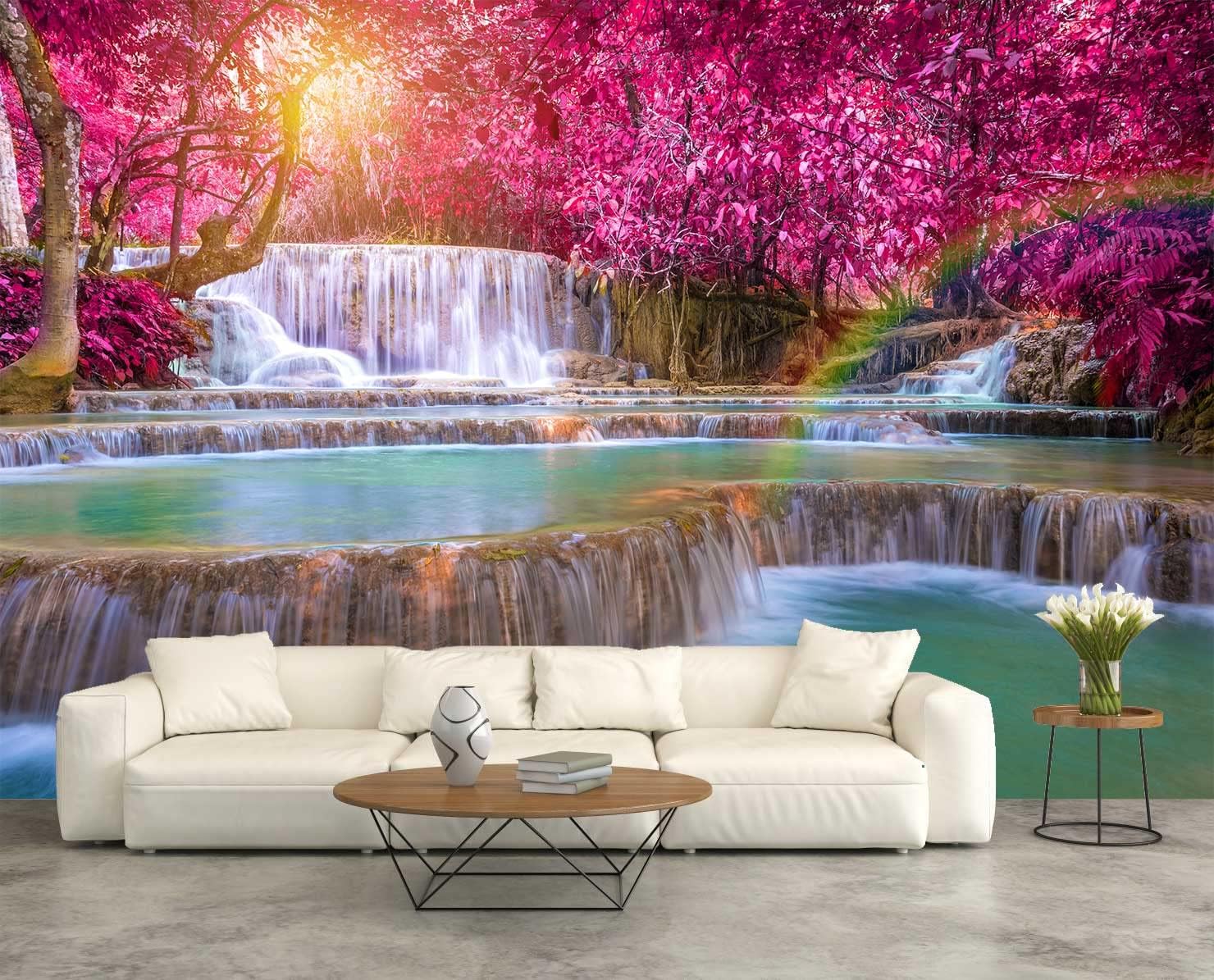 Forest Waterfall Wall Mural Wallpaper Large Nature Scenery Mural for Bedroom Living Room TV Background Sofa Wall(Not Peel and Stick)