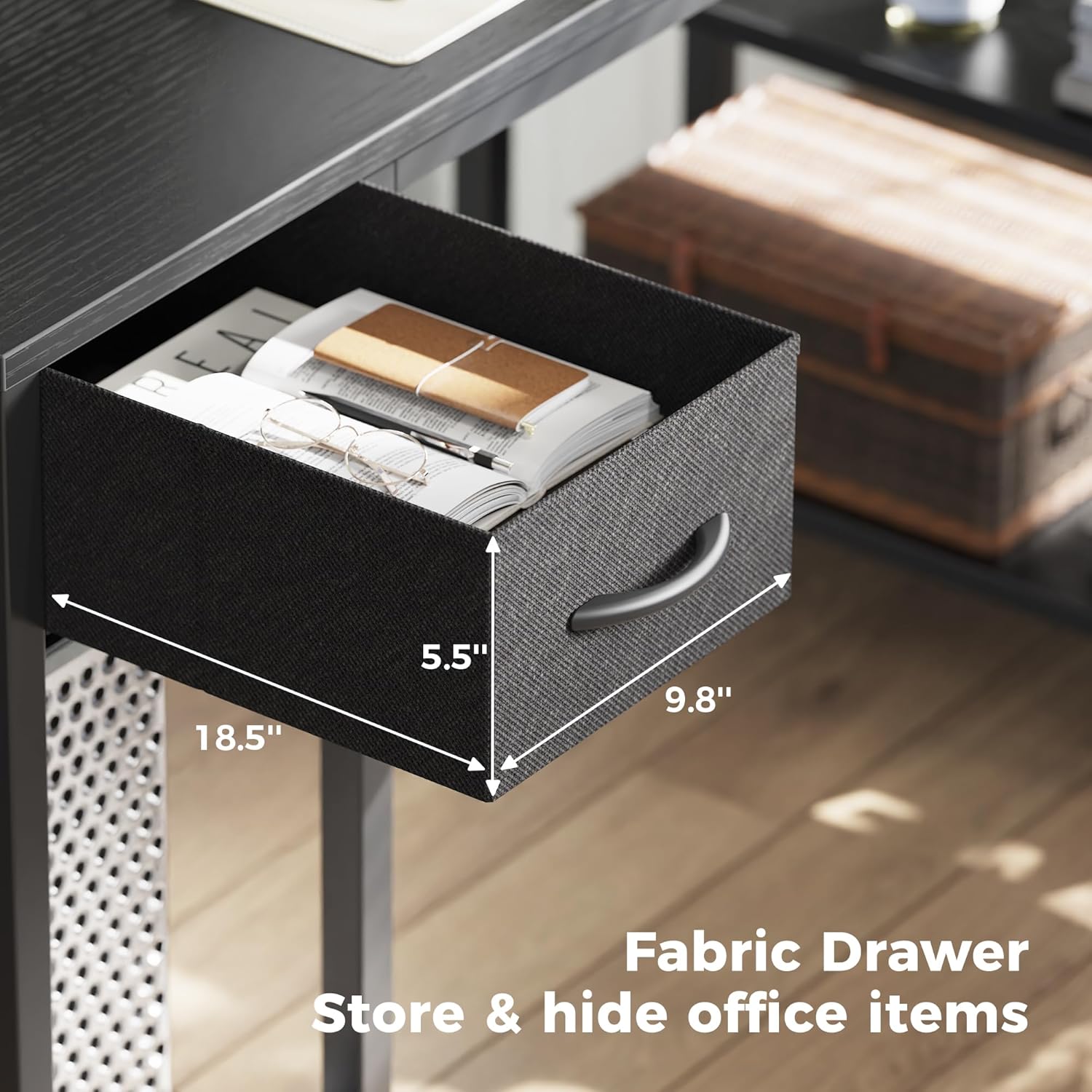 - 【Large Storage Space】Product Dimensions: 19.3"D x 47.3"W x 29.5"H. With reversible design, 2 storage shelves allow you to store unlimited office supplies. The pc tower can be placed on the CPU stand and there is a fabric drawer to store stationery and other privacy items. Super practical design!