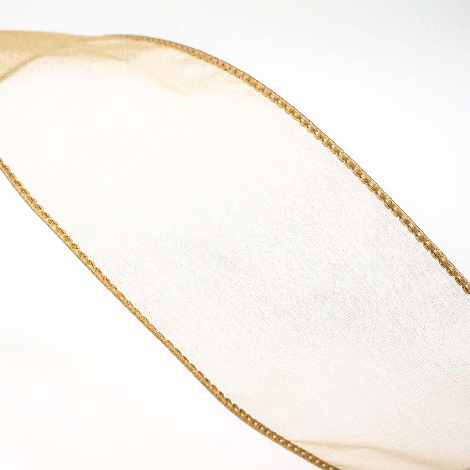 - GREAT WORKMANSHIP - Our Sheer Organza Wired Ribbon 2.5" has a density weave so you won’t find any loose edges. You won’t find any fraying ends or loose strings anywhere, making our Sheer Organza Wired Ribbon 2.5" Tan (Gold) color perfect for high-end and professional DIY works and Crafts.