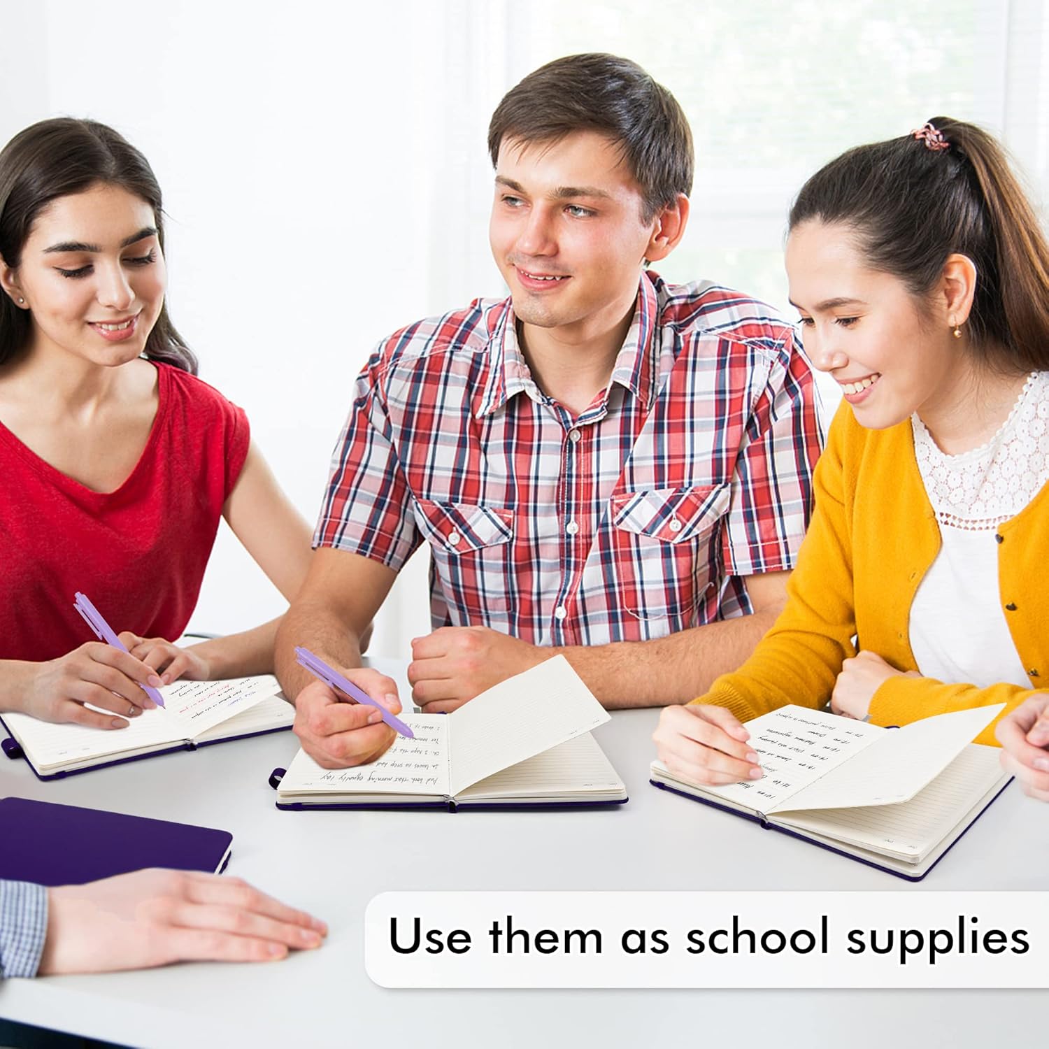 - Feela 5 Pack Classic Ruled Notebooks contains 5 purple ruled sturdy cover notebooks and 5 Black Retractable Pens. Each of the notebooks measures 8.3” x 5.1”, which is perfect to carry and easily held by young girls and boys. These black cute pens are customized to be placed in the pen holder, which is pretty convenient.