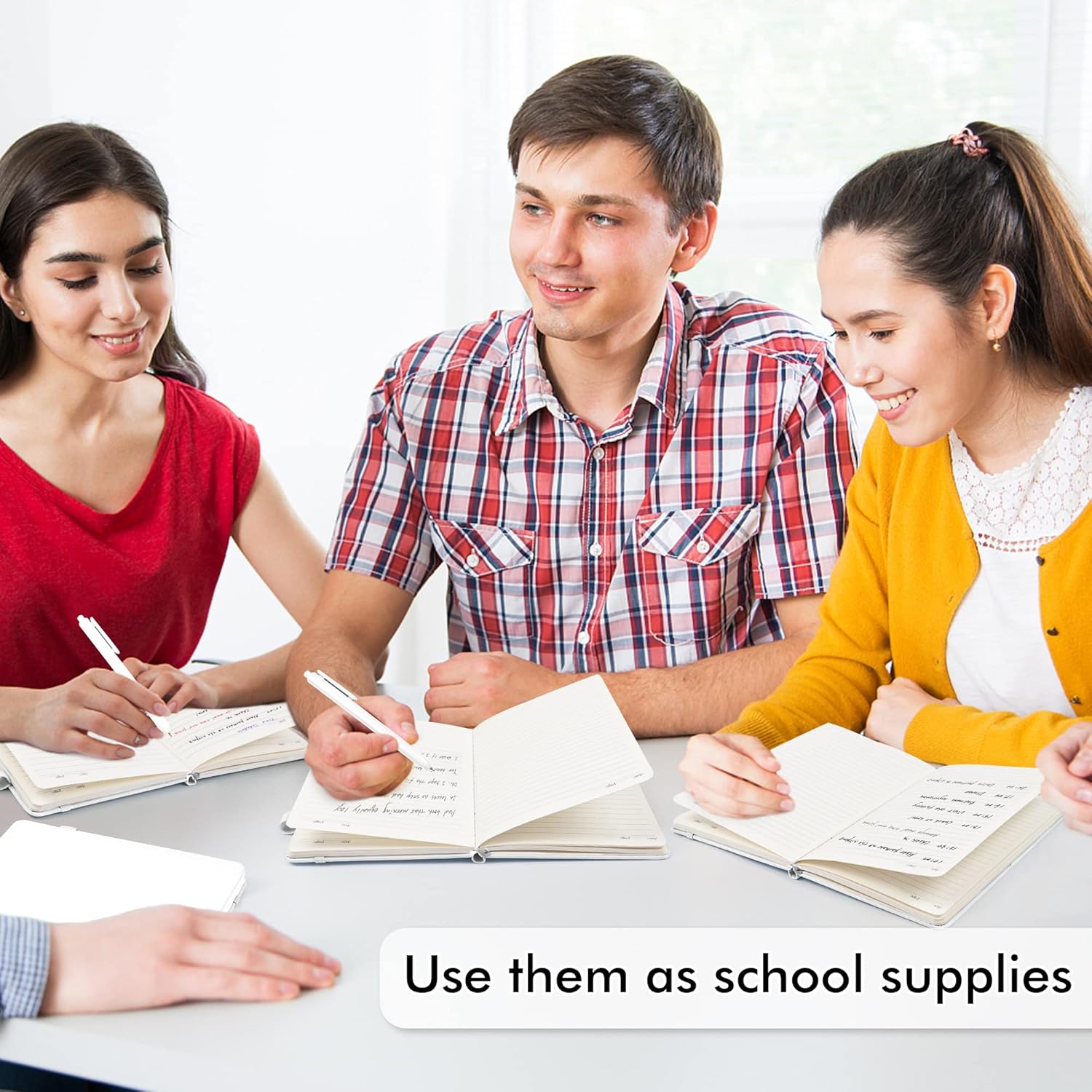 feela College Ruled Notebooks, 24 Pack Business Notebook Hardcover Lined Writing Journal with Pen Holder for Men Women Note Taking, with 24 Black Pens, 120 GSM, 5.1”x8.3”, A5, White