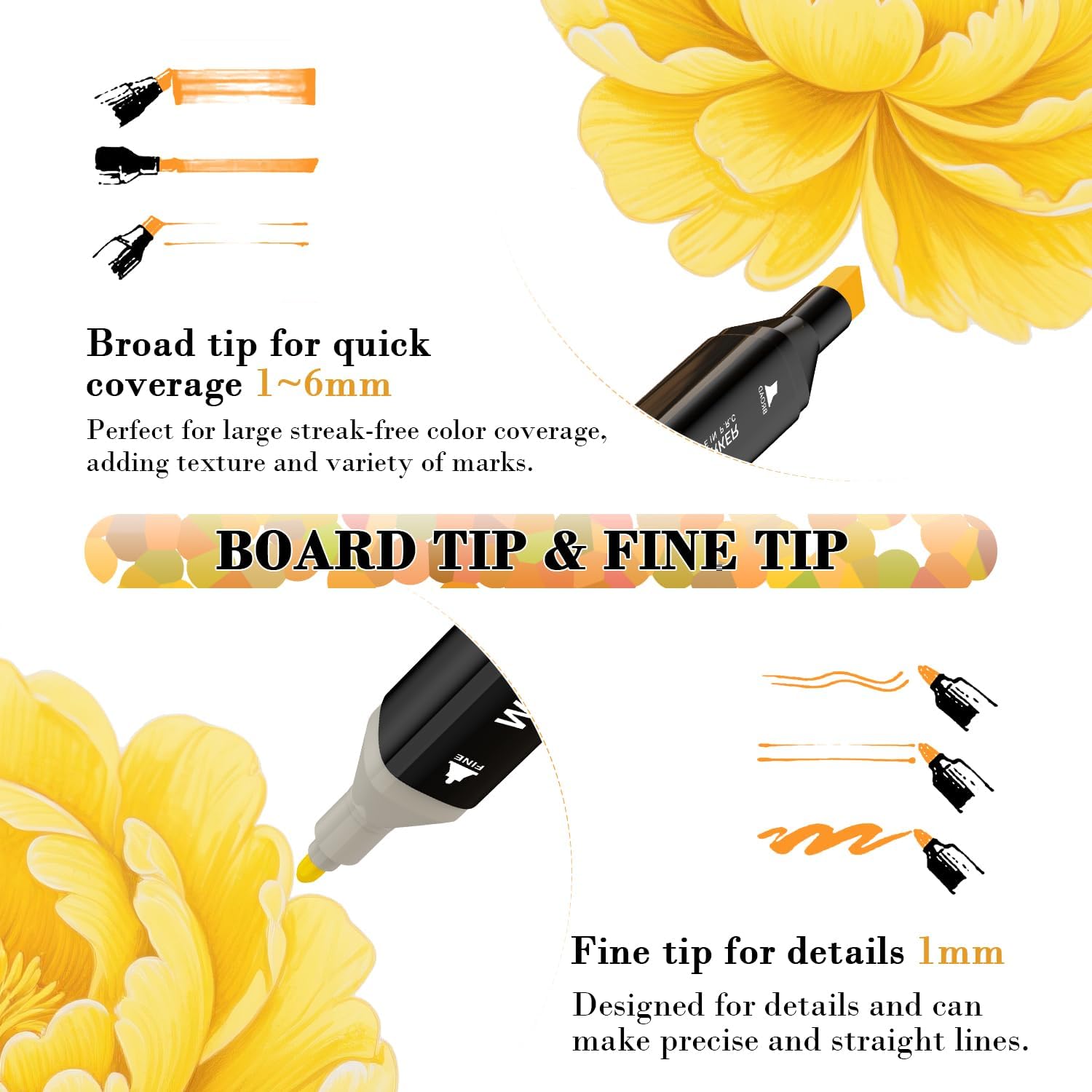 - TWO PENS IN ONE:Save money and space with dual tip markers that allow you to create fine details with the bullet tip or broad, sweeping strokes with the chisel tip and immerse yourself in art.blend shades beautifully with alcohol markers that also reduce coloring lines, helping even beginners create professional effects with these blendable markers