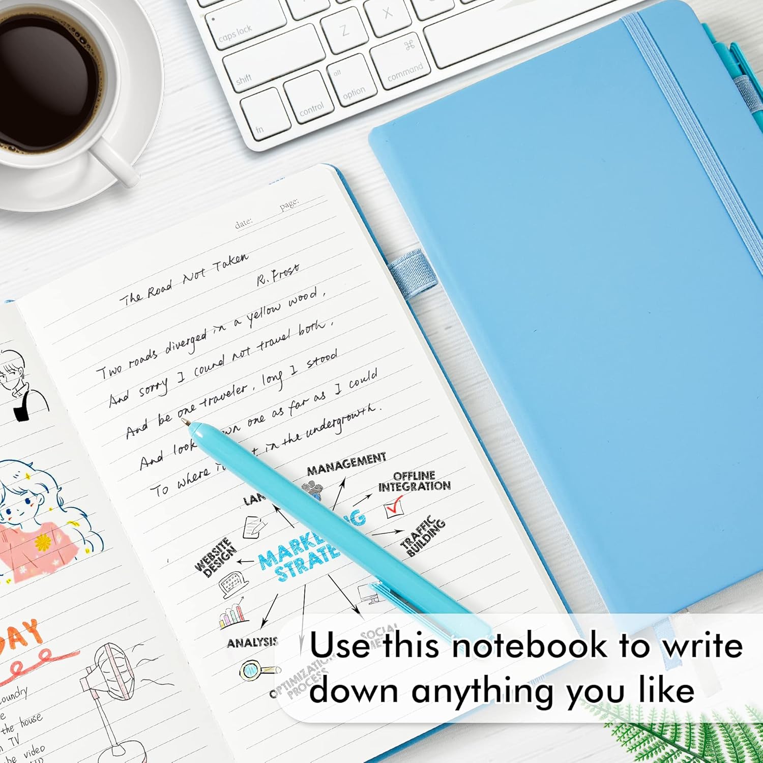 - Feela 5 Pack Classic Ruled Notebooks contains 5 Blue ruled sturdy cover notebooks and 5 Black Retractable Pens. Each of the notebooks measures 8.3” x 5.1”, which is perfect to carry and easily held in hand. These black cute pens are customized to be placed in the pen holder, which is pretty convenient.
