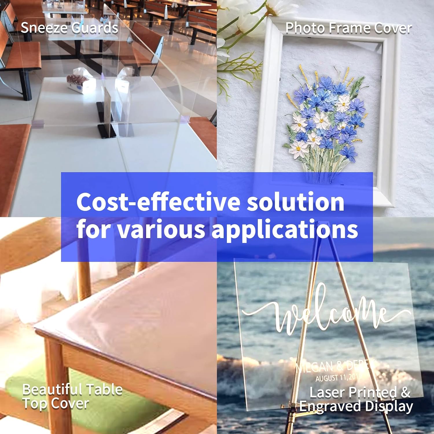 - ✅Versatile Uses: Great choice for indoor and outdoor use such as picture frames, craft projects, dust cover, splashboard, laser engraved signage, hobby display cases, art protector, tabletop protector, home décor, shelving, displays and signage for wedding, party, store and more.